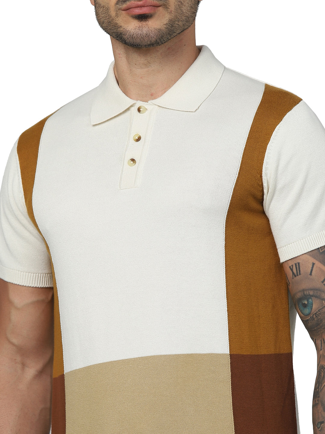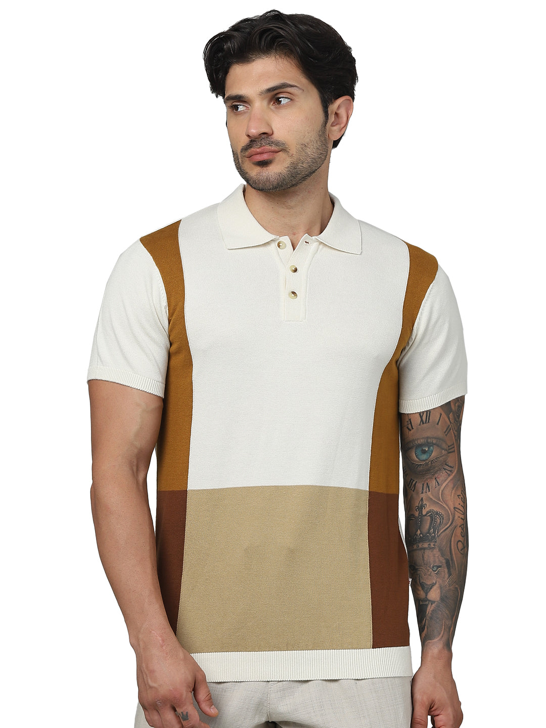 Shop the Celio Men multi Polo Collar Colourblocked T-shirt. Made of cotton, this casual short sleeve tee offers a regular fit, perfect for everyday wear. Disclaimer: All other items in the image are only for display purposes and will not be a part of the delivery content. Product colour may slightly vary due to photographic lighting sources. Country of Origin - India.