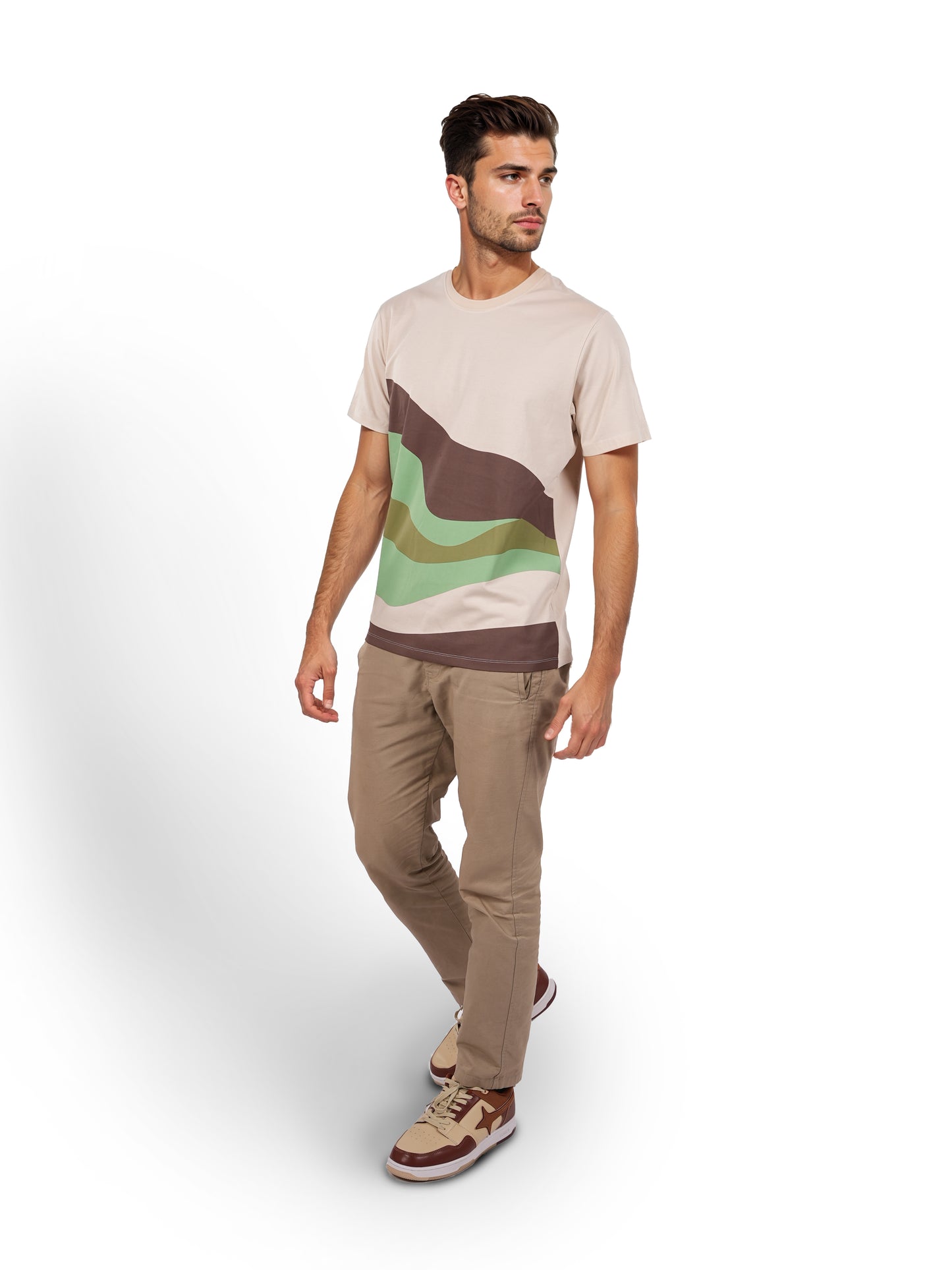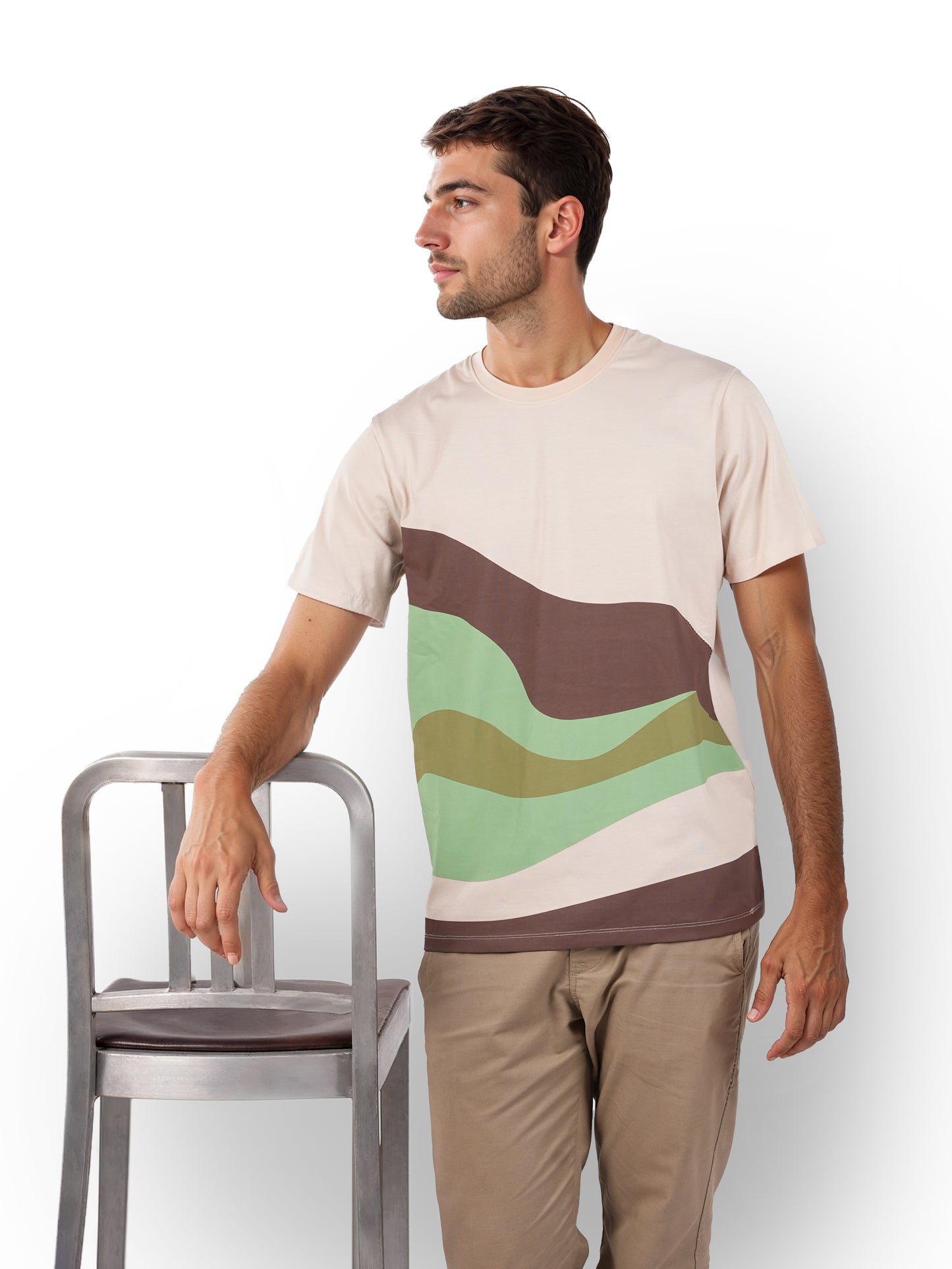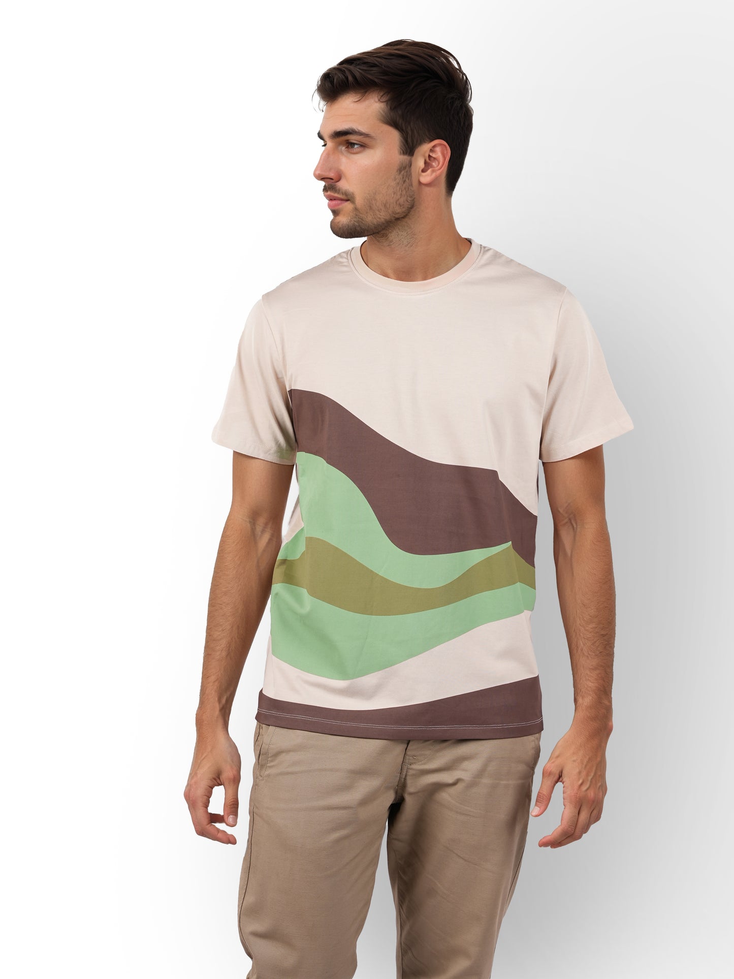Men's multi round neck T-shirt by Celio, featuring a stylish colorblocked design with all-over print. Made from soft cotton, perfect for casual occasions with short sleeves. Disclaimer: All other items in the image are only for display purposes and will not be a part of the delivery content. Product colour may slightly vary due to photographic lighting sources. Country of Origin - India.