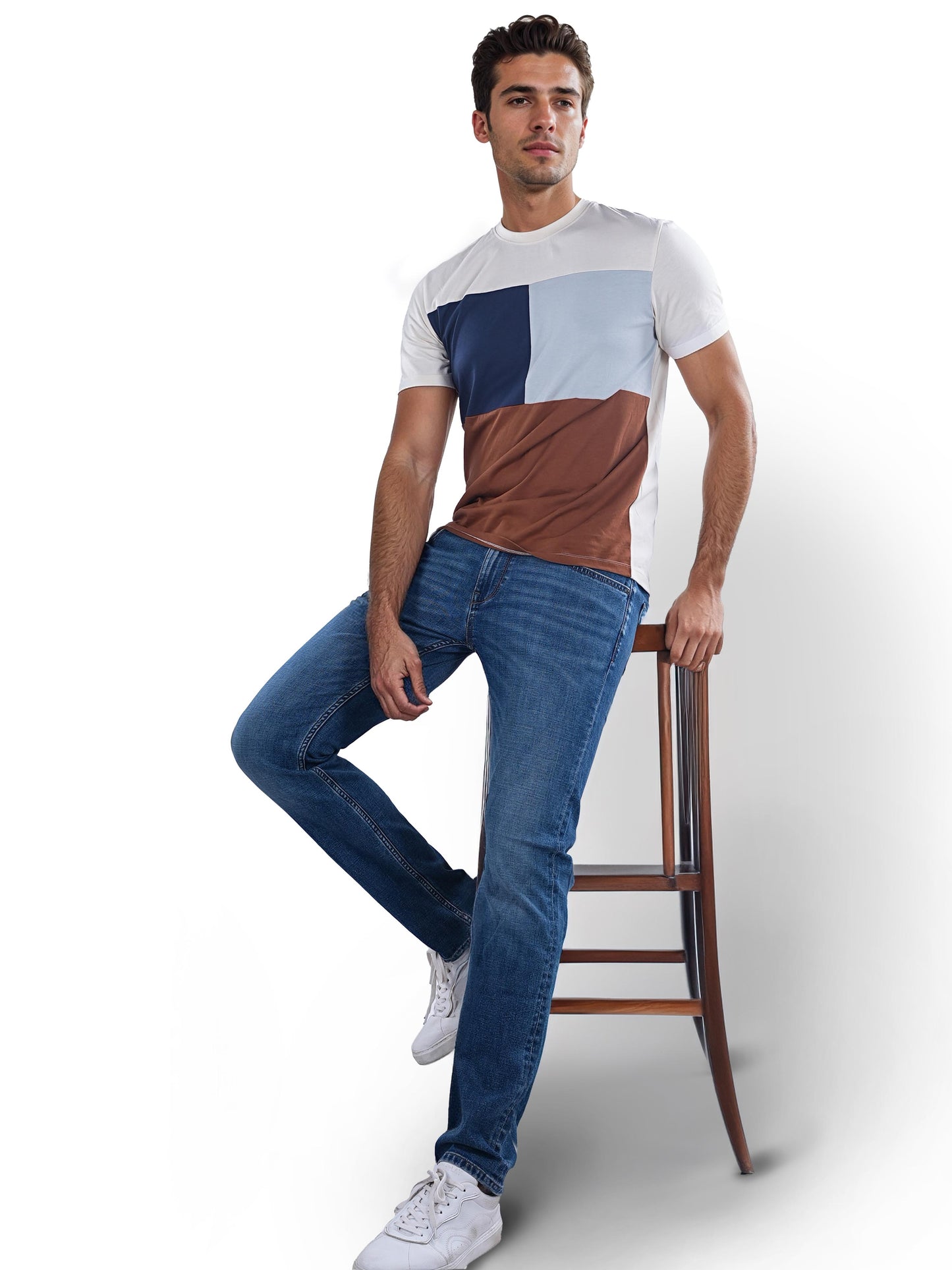 Celio* Colourblock Straight Fit Cotton Multi T-Shirt