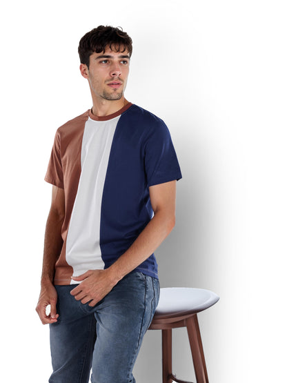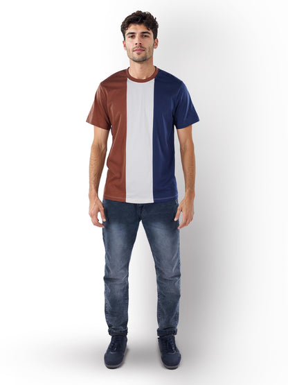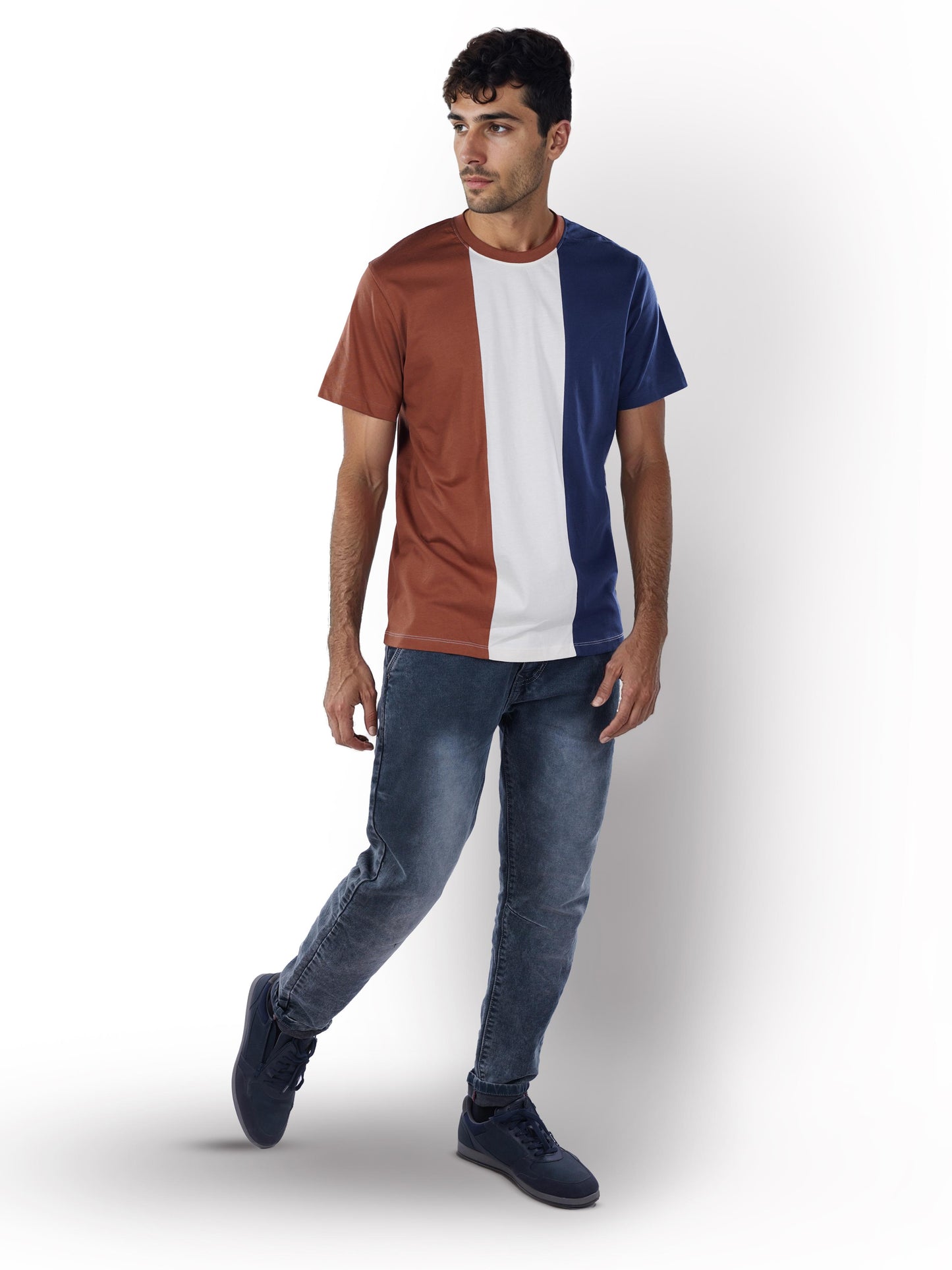 Shop Celio's Men Multi Round Neck Colourblocked Cotton T-shirt. Perfect for casual occasions, this regular fit tee features short sleeves and a stylish design for a trendy look. Disclaimer: All other items in the image are only for display purposes and will not be a part of the delivery content. Product colour may slightly vary due to photographic lighting sources. Country of Origin - India.
