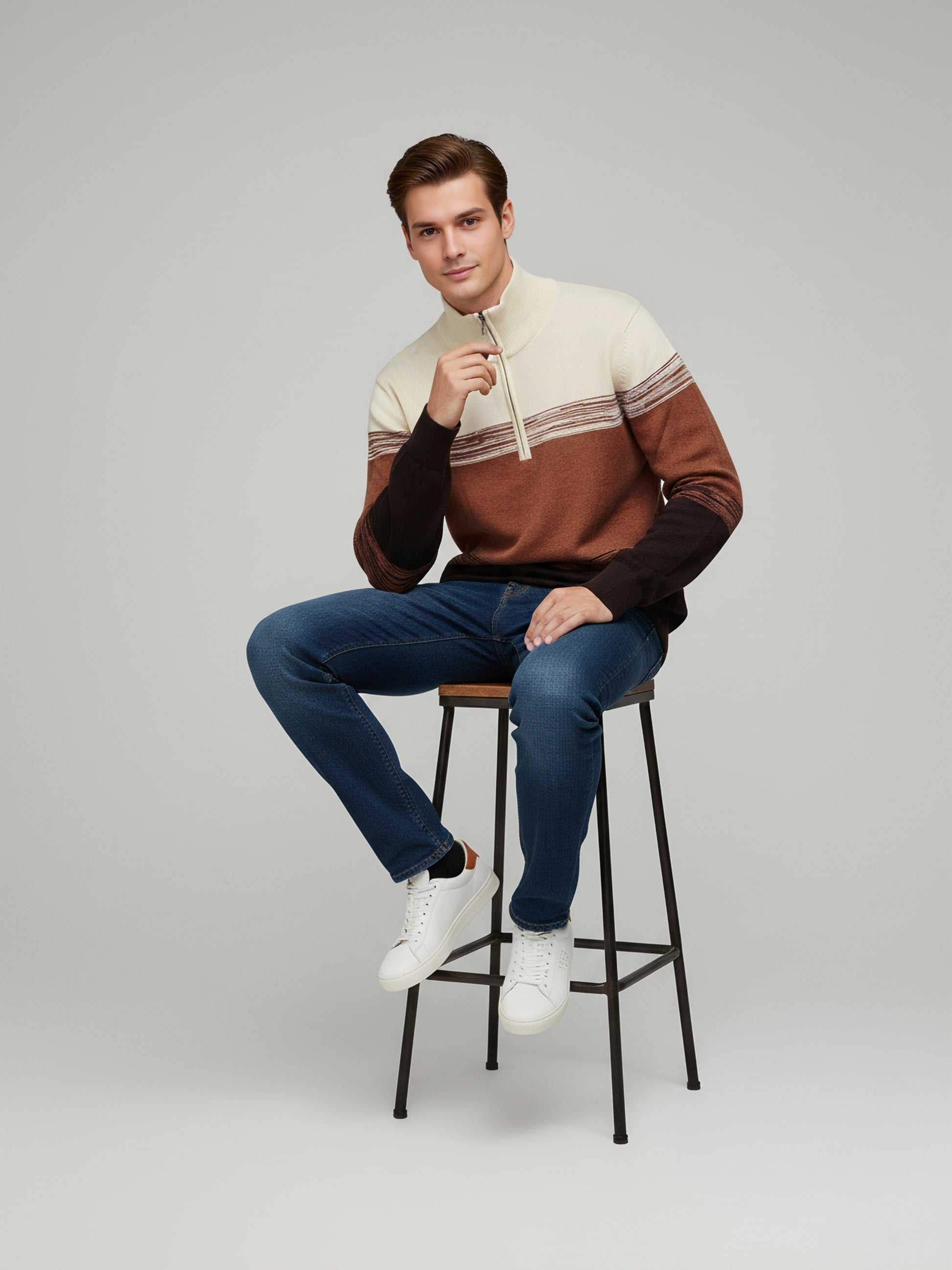 Elevate your casual wardrobe with the Celio Men's Multi Colourblocked Regular Fit Sweater, crafted from soft cotton for comfort. This trendy long-sleeve design is perfect for any outing. Disclaimer: All other items in the image are only for display purposes and will not be a part of the delivery content. Product colour may slightly vary due to photographic lighting sources. Country of Origin - India.
