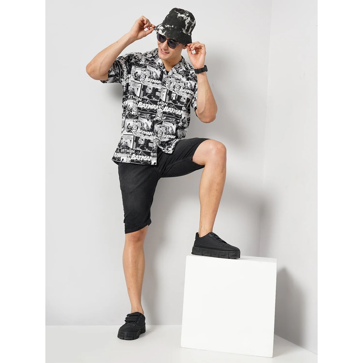 Embrace the legendary spirit of Gotham's protector with the BATMAN multi Cotton Shirt. Tailored for a relaxed fit, this shirt is crafted from high-quality, breathable cotton, offering all-day comfort with a dose of superhero style. The classic multi color brings a timeless elegance, while the striking Batman graphic design adds a contemporary twist, making this shirt the perfect choice for fans who want to showcase their admiration for the Dark Knight in a subtle yet bold way. With a casual camp neckline and half sleeves, this shirt exudes effortless style, whether you're out on a casual outing or grabbing coffee with friends. Pair it with jeans for a laid-back look or elevate it with chinos for a more polished vibe. Designed for those who believe in justice, courage, and the power of a hero, this shirt makes it easy to channel Batman’s unyielding spirit. Perfect for fans of Gotham’s iconic hero, the BATMAN multi Cotton Shirt lets you express your love for the Caped Crusader while staying stylish and comfortable. Celebrate the legacy of Batman with a piece that offers versatility and fashion, ensuring you wear the Bat-symbol proudly wherever you go. Disclaimer: All other items in the image are only for display purposes and will not be a part of the delivery content. Product colour may slightly vary due to photographic lighting sources. Country of Origin - India.