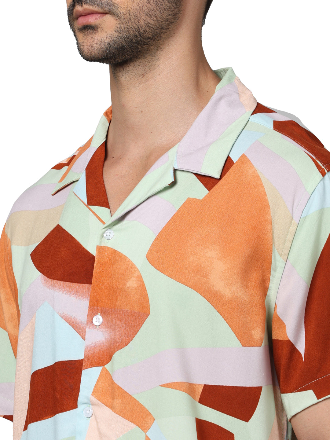 Shop the Celio Men multi Spread Collar Shirt made from soft viscose rayon. Perfect for casual occasions with a stylish printed design and comfortable short sleeves. Disclaimer: All other items in the image are only for display purposes and will not be a part of the delivery content. Product colour may slightly vary due to photographic lighting sources. Country of Origin - India.
