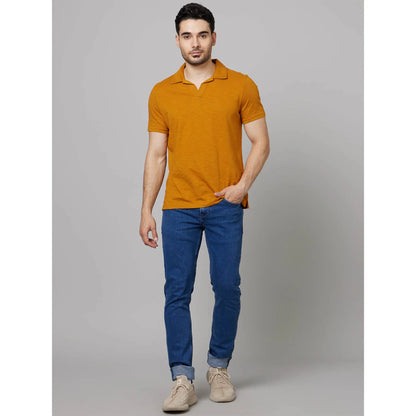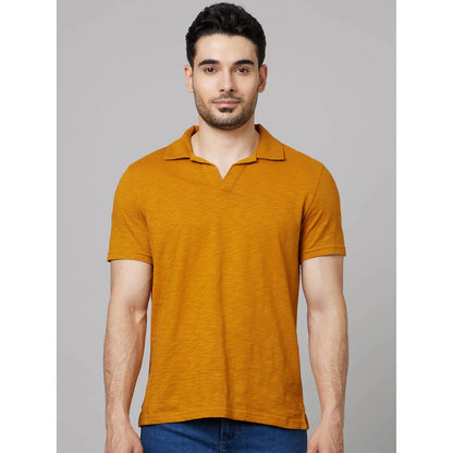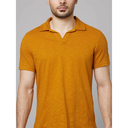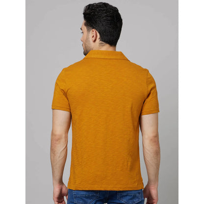 Celio* Solid Regular Fit Cotton Mustard T-Shirt
