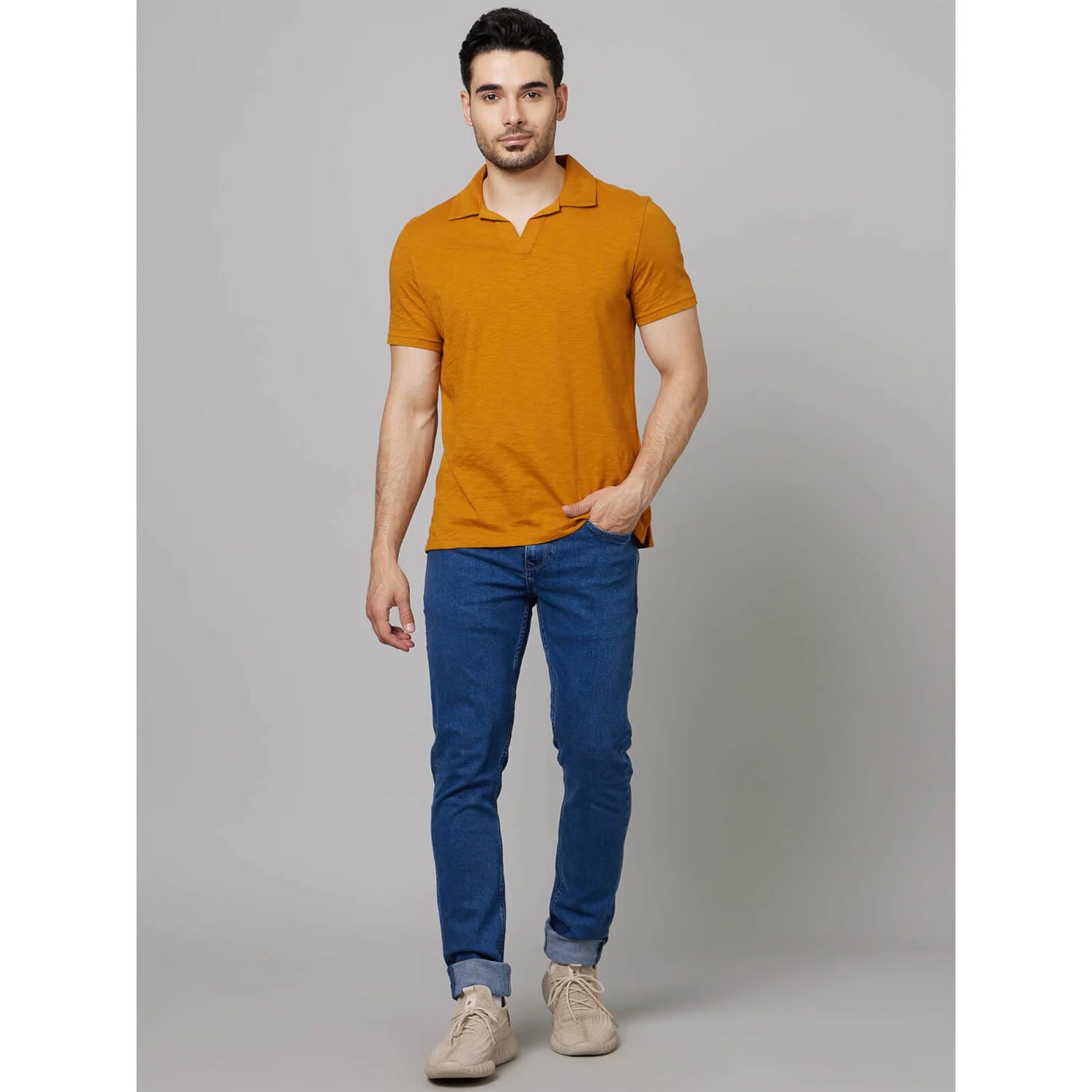 Elevate your casual look with the Celio Men's Mustard Polo. Made from soft cotton, it features half sleeves for comfort and style, perfect for any casual occasion. Disclaimer: All other items in the image are only for display purposes and will not be a part of the delivery content. Product colour may slightly vary due to photographic lighting sources. Country of Origin - India.