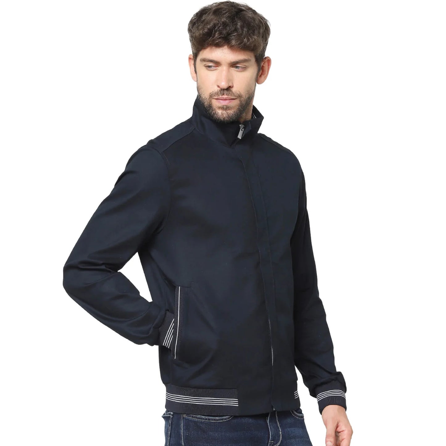 Celio* Solid Regular Fit Cotton-Blend Navy Blue Jacket
