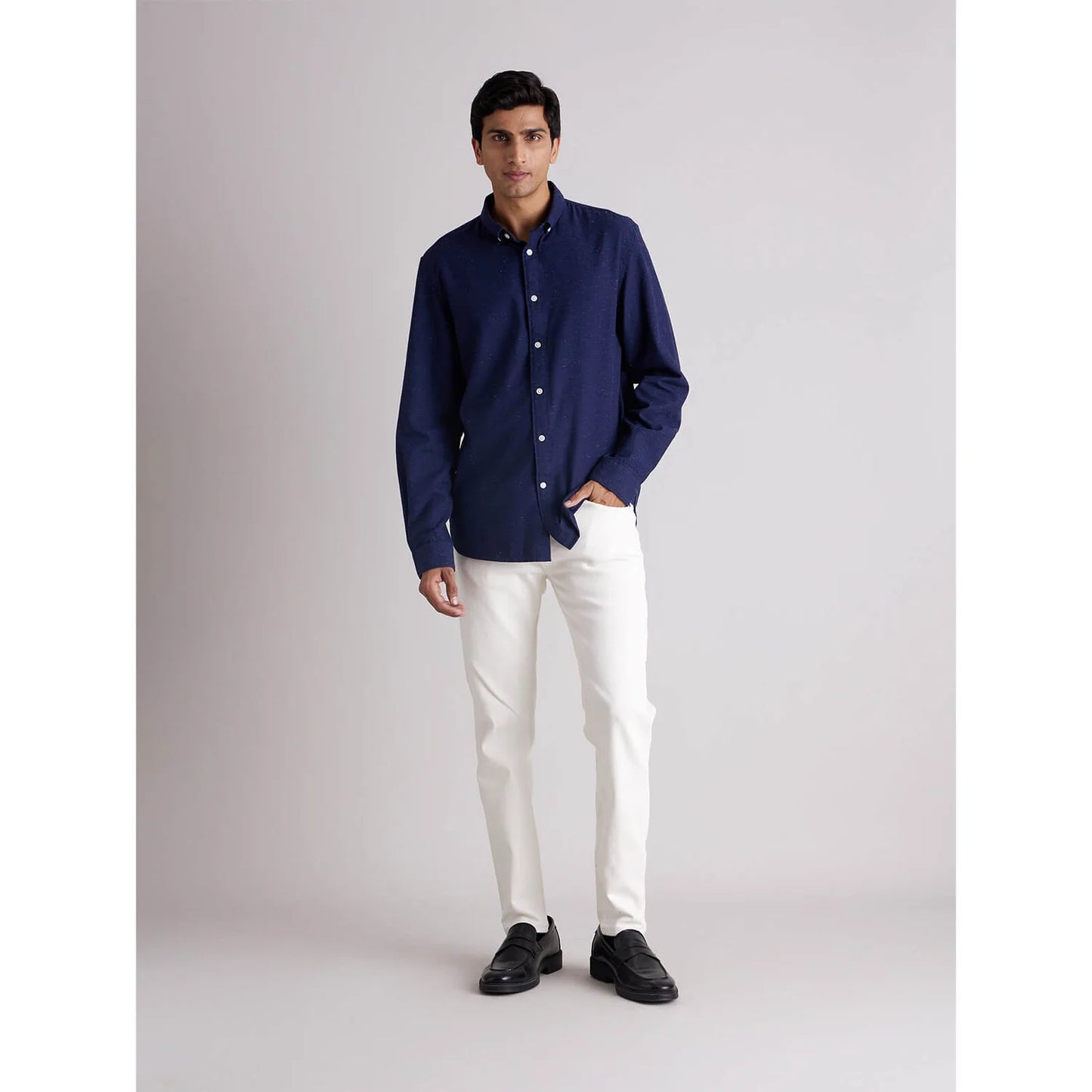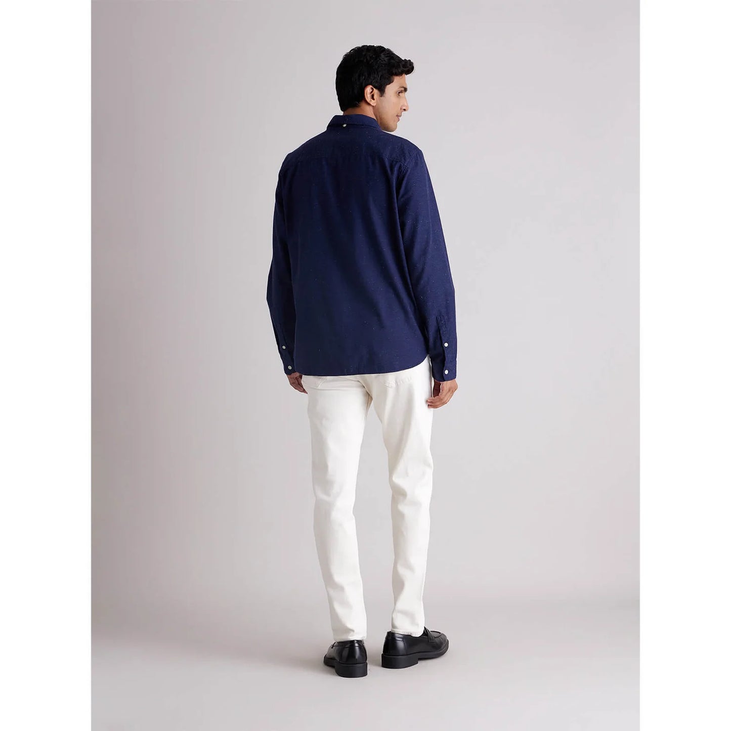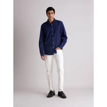 Celio* Solid Regular Fit Cotton-Blend Navy Blue Shirt