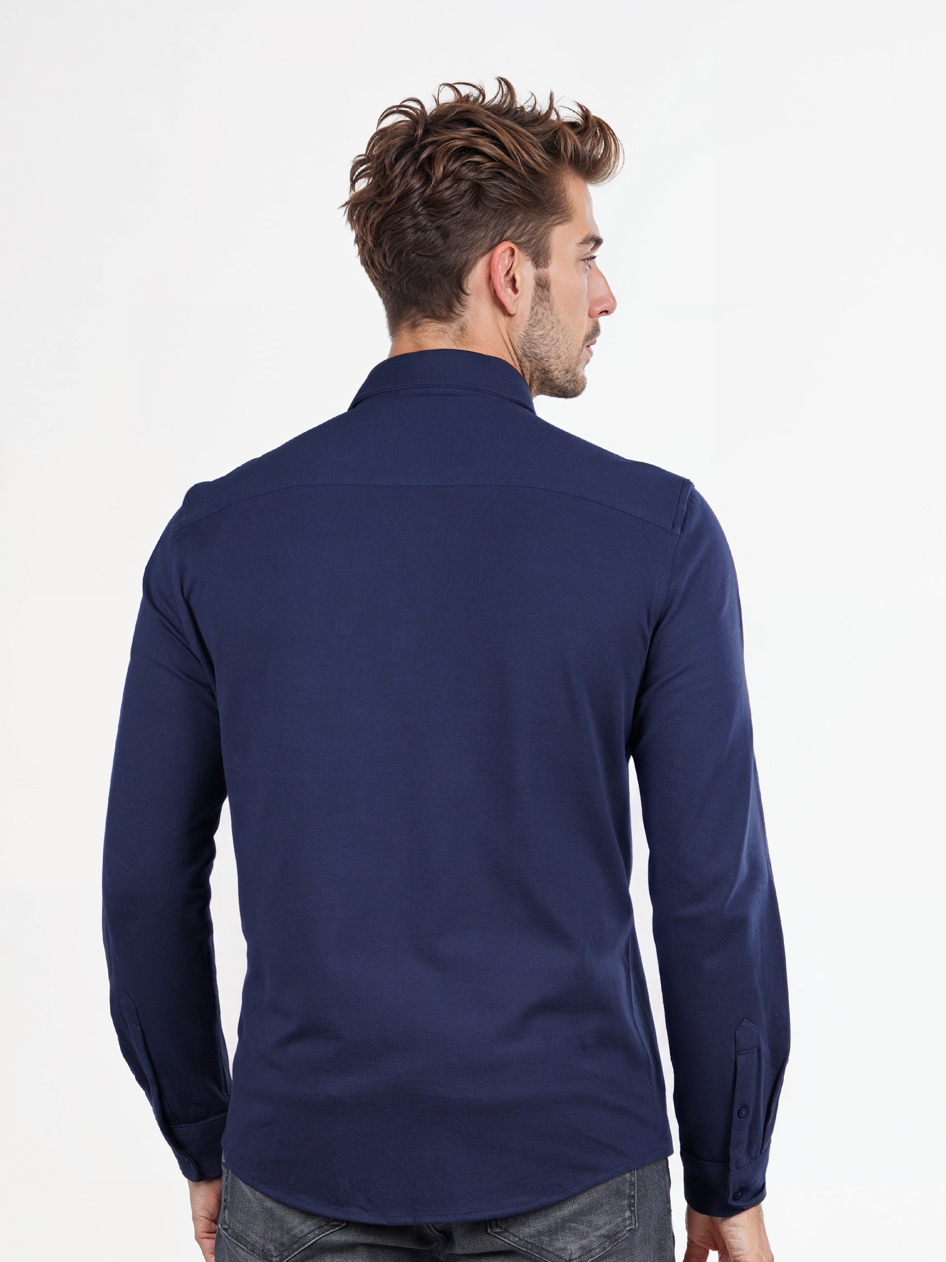 Stay stylish in this navy blue solid shirt by Celio. Made from a comfortable cotton-blend, it features long sleeves and is perfect for casual occasions. Disclaimer: All other items in the image are only for display purposes and will not be a part of the delivery content. Product colour may slightly vary due to photographic lighting sources. Country of Origin - India.