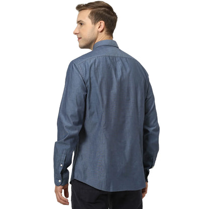 Celio* Solid Regular Fit Cotton-Blend Navy Blue Shirt
