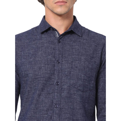 Celio* Solid Regular Fit Cotton-Blend Navy Blue Shirt