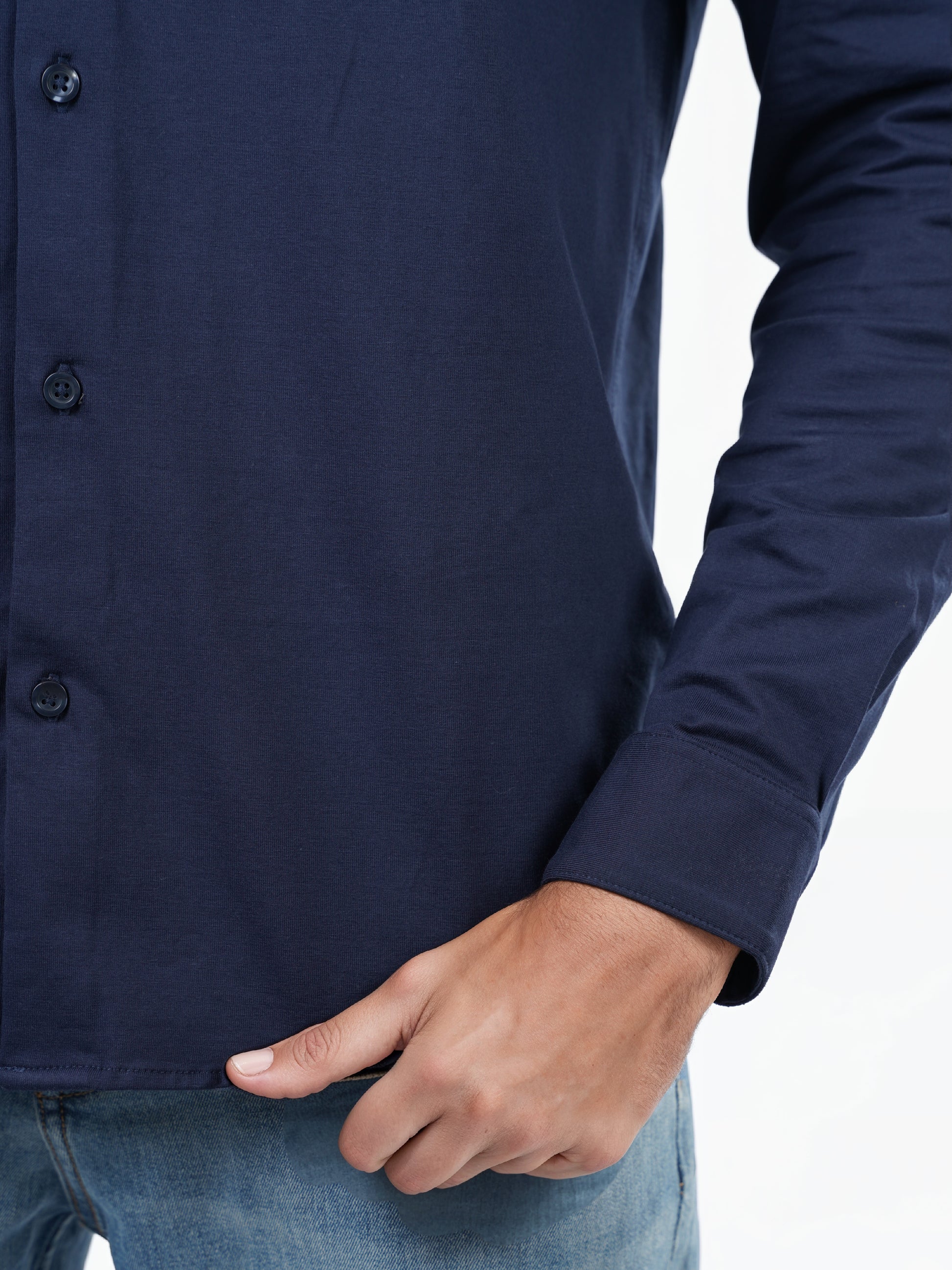 Celio* Solid Regular Fit Cotton-Blend Navy Blue Shirts