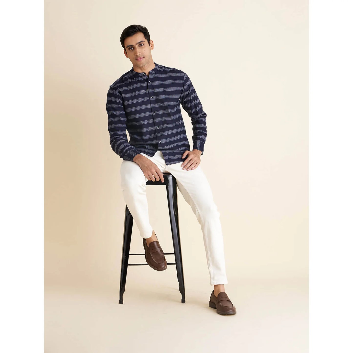 Celio* Striped Regular Fit Cotton-Blend Navy Blue Shirt