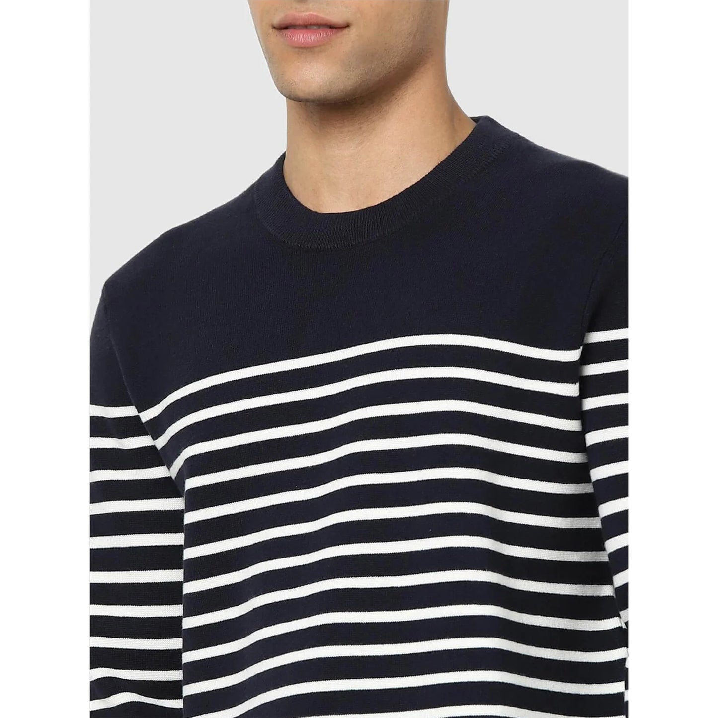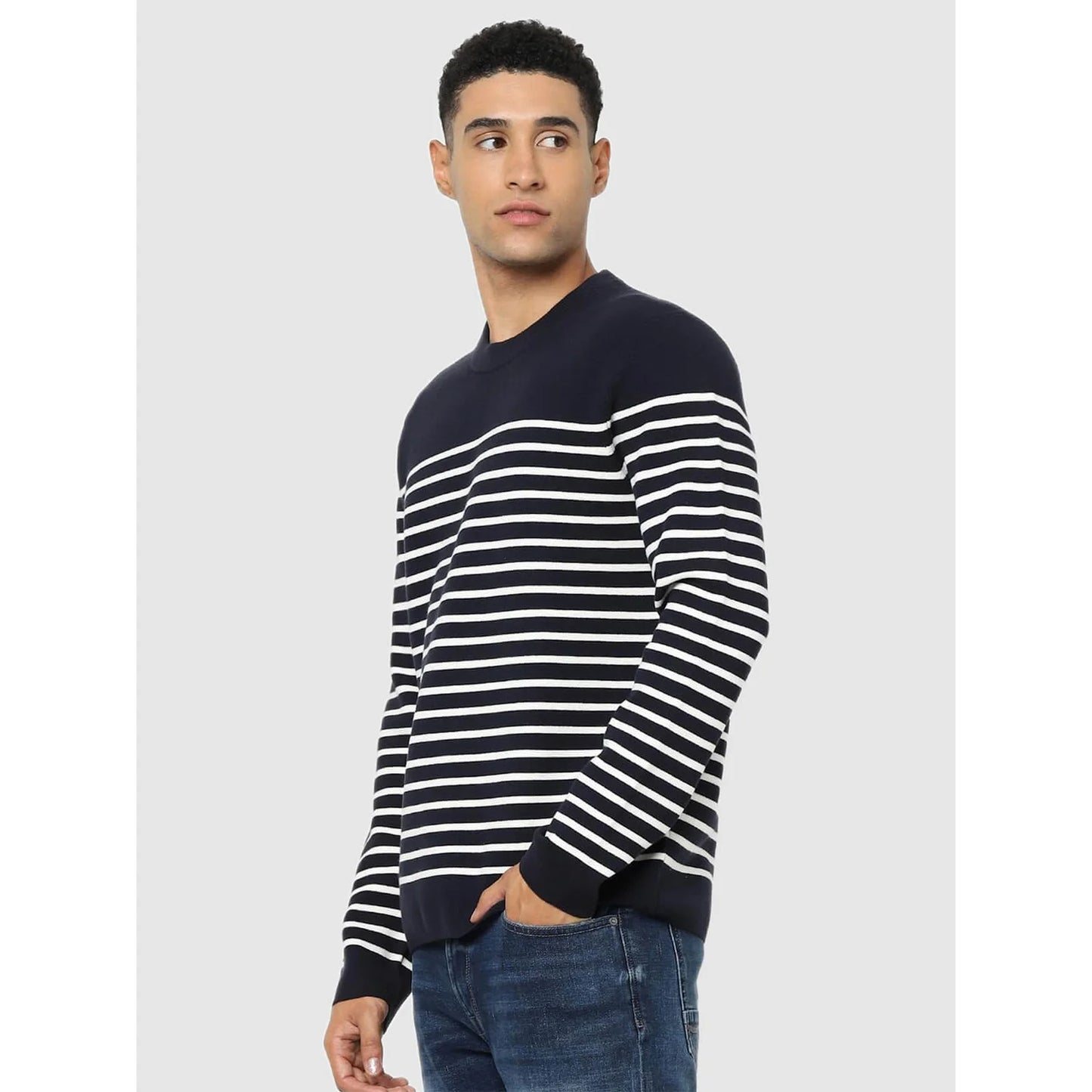 Celio* Striped Regular Fit Cotton-Blend Navy Blue Sweater