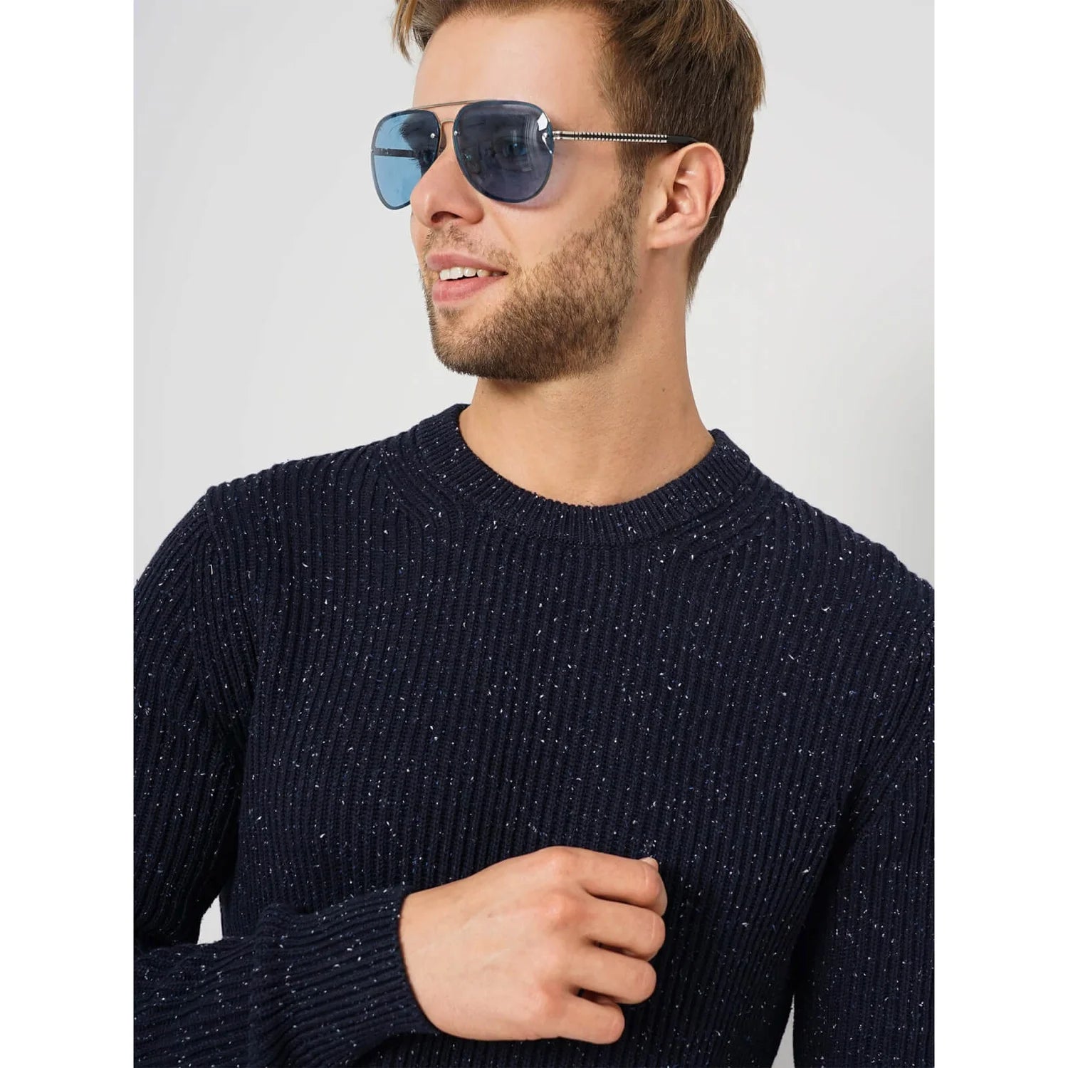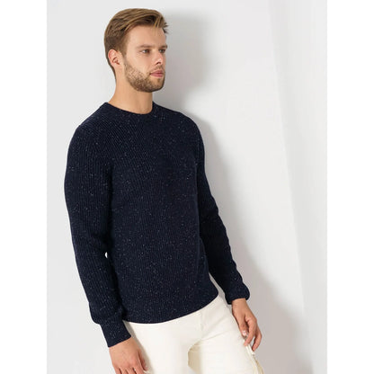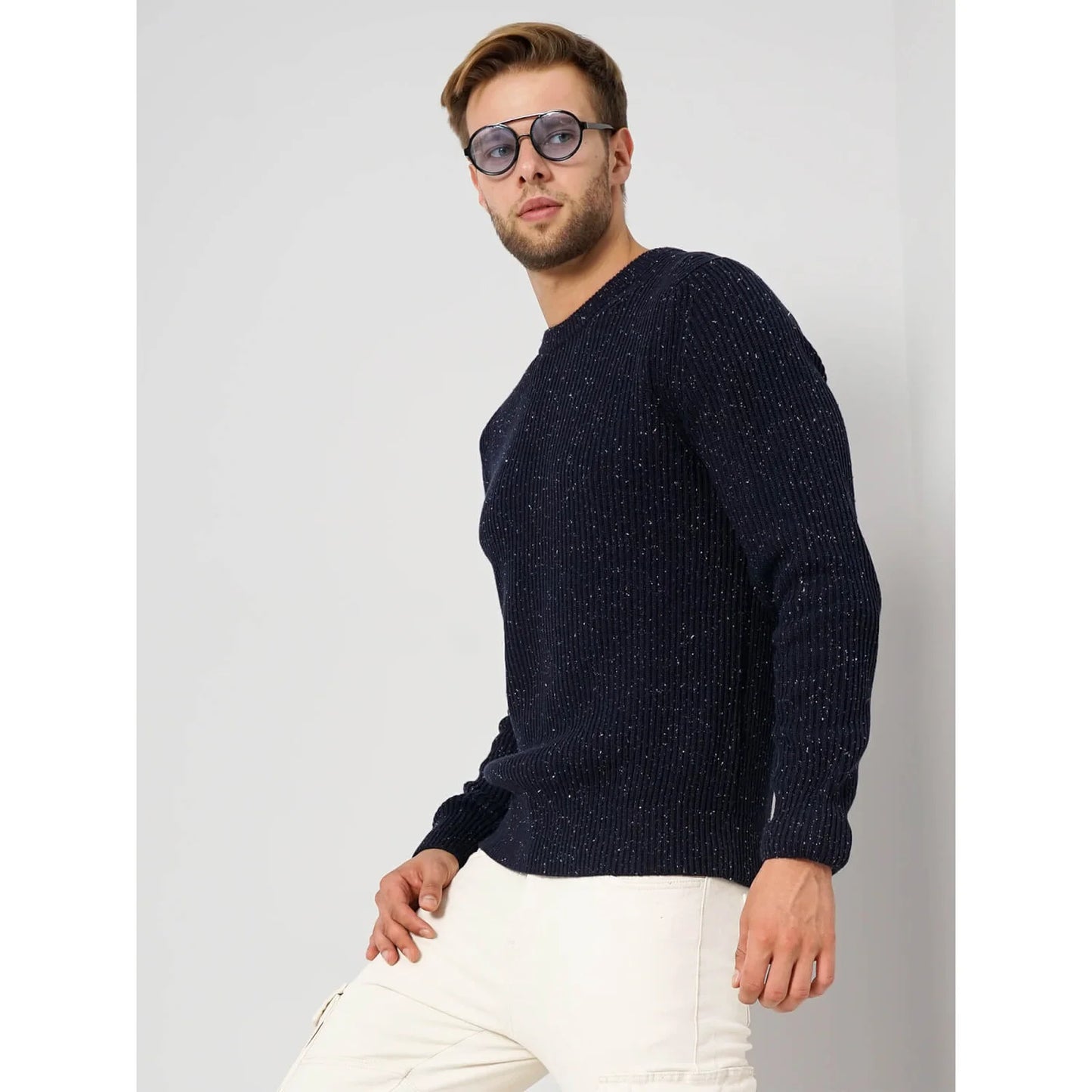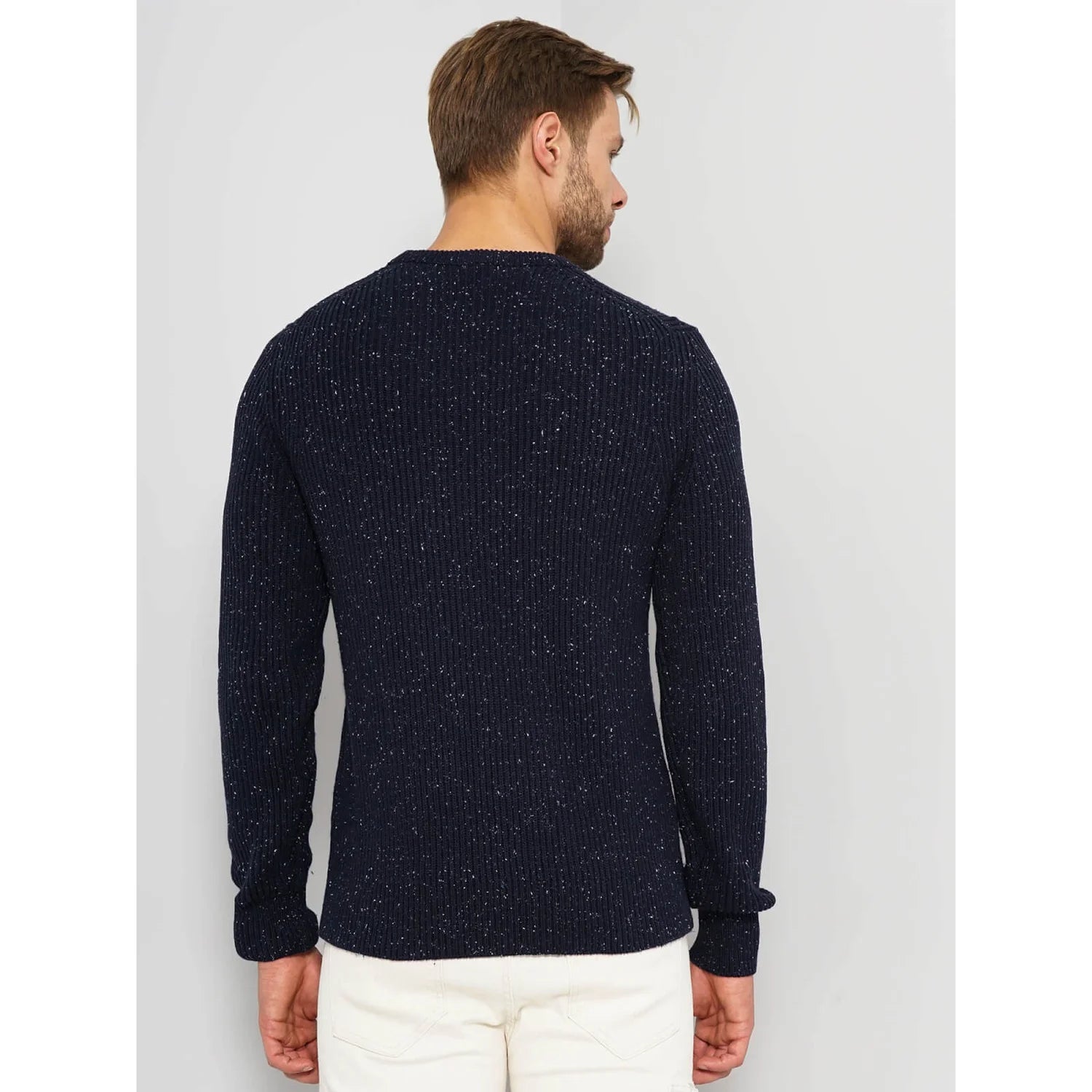Celio* Textured Regular Fit Cotton-Blend Navy Blue Sweater