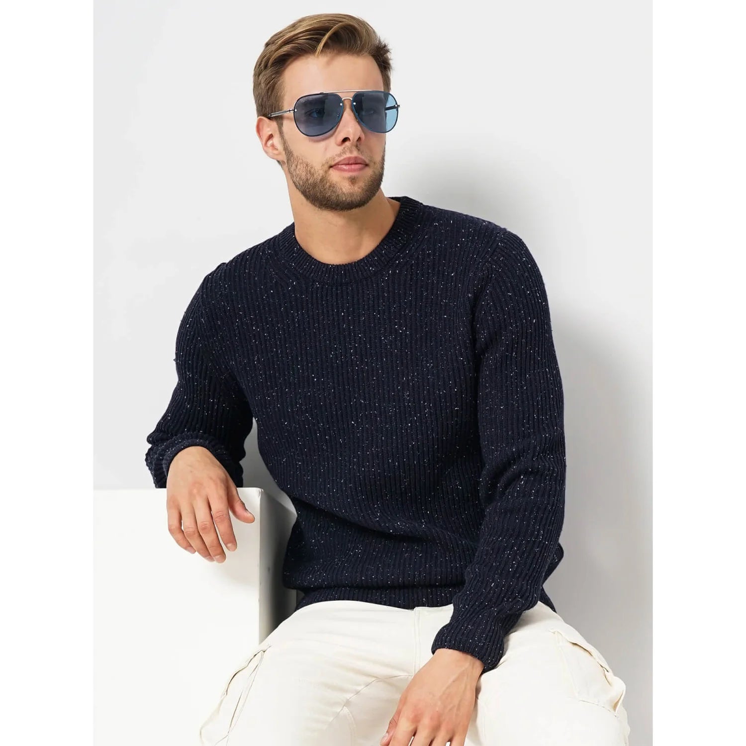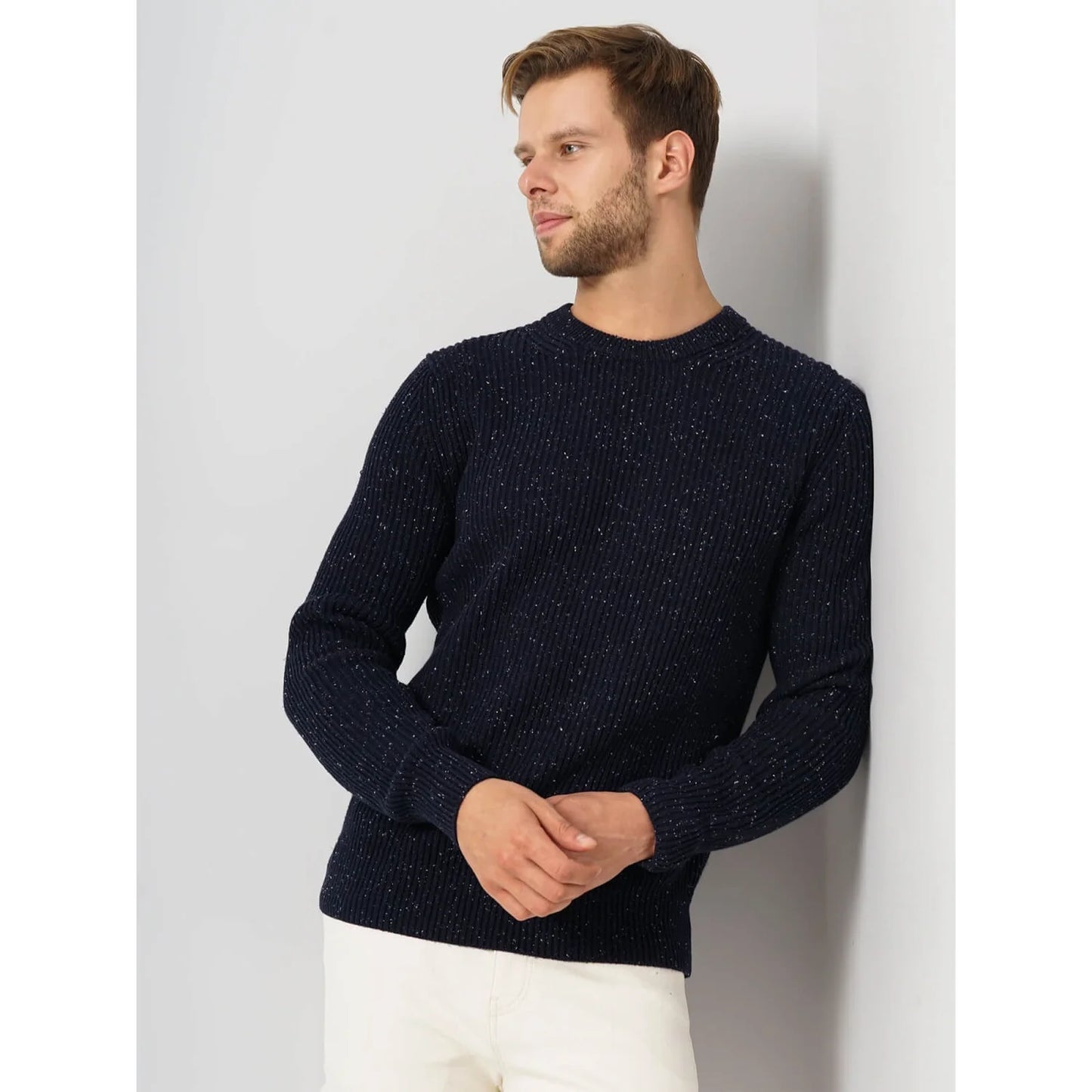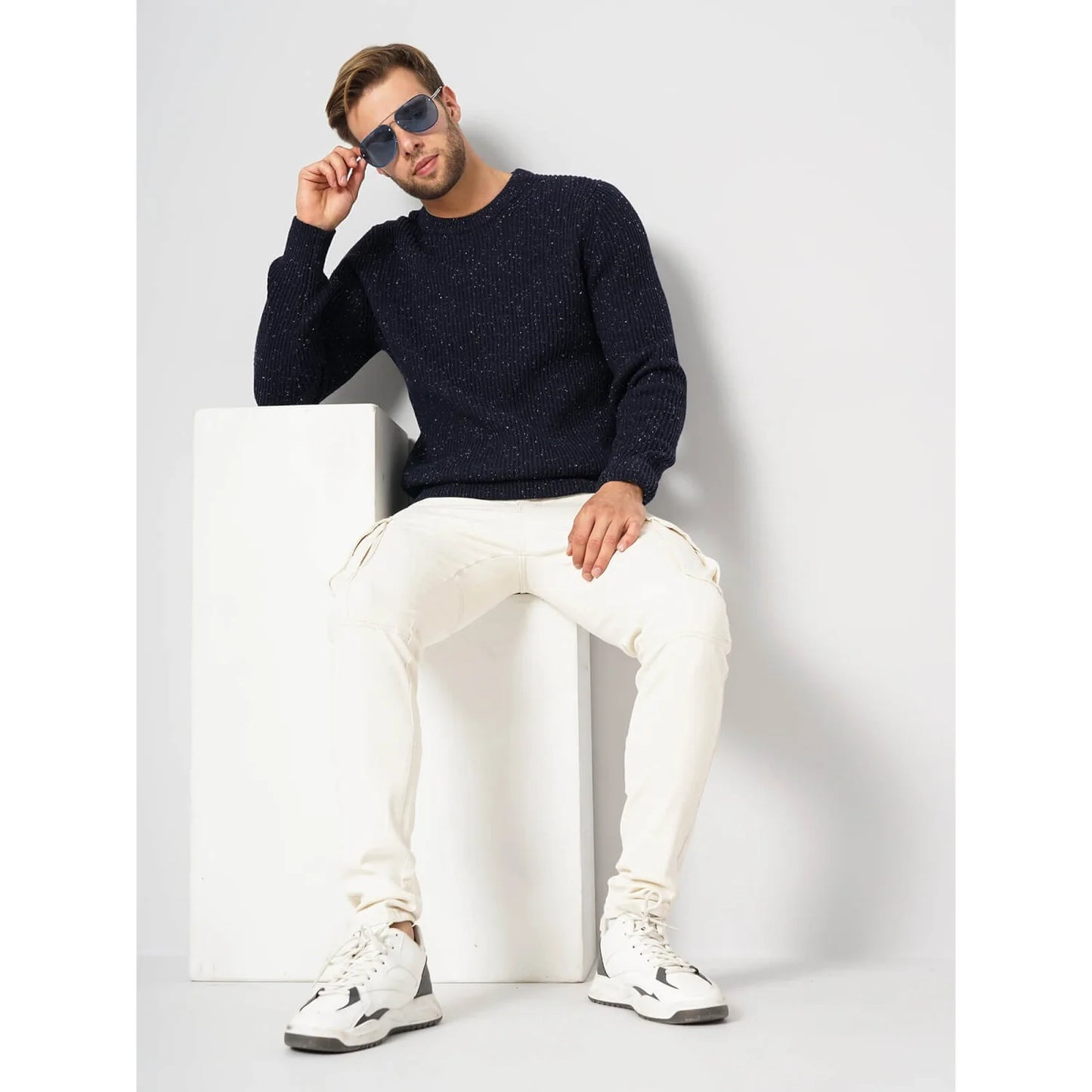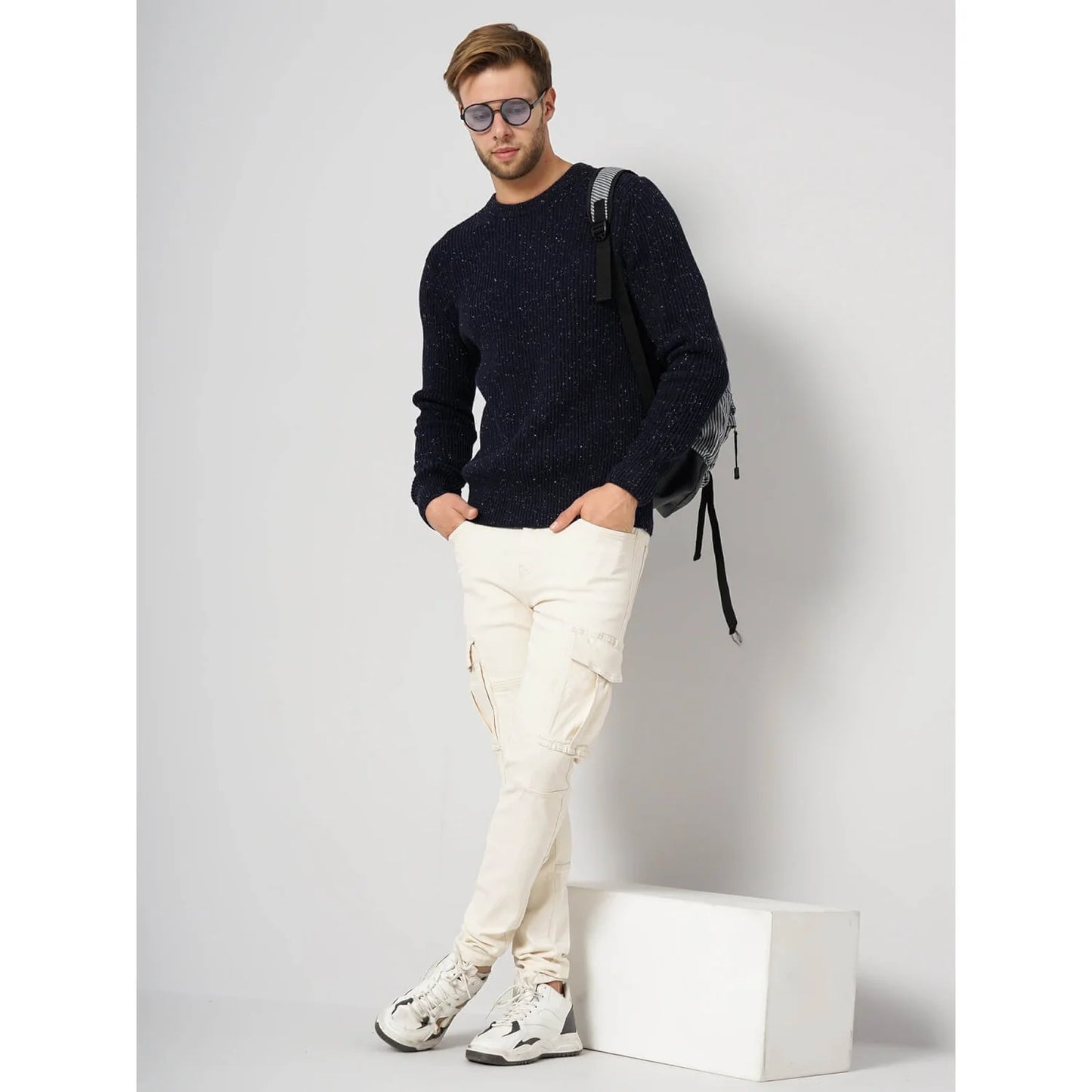 Celio* Textured Regular Fit Cotton-Blend Navy Blue Sweater
