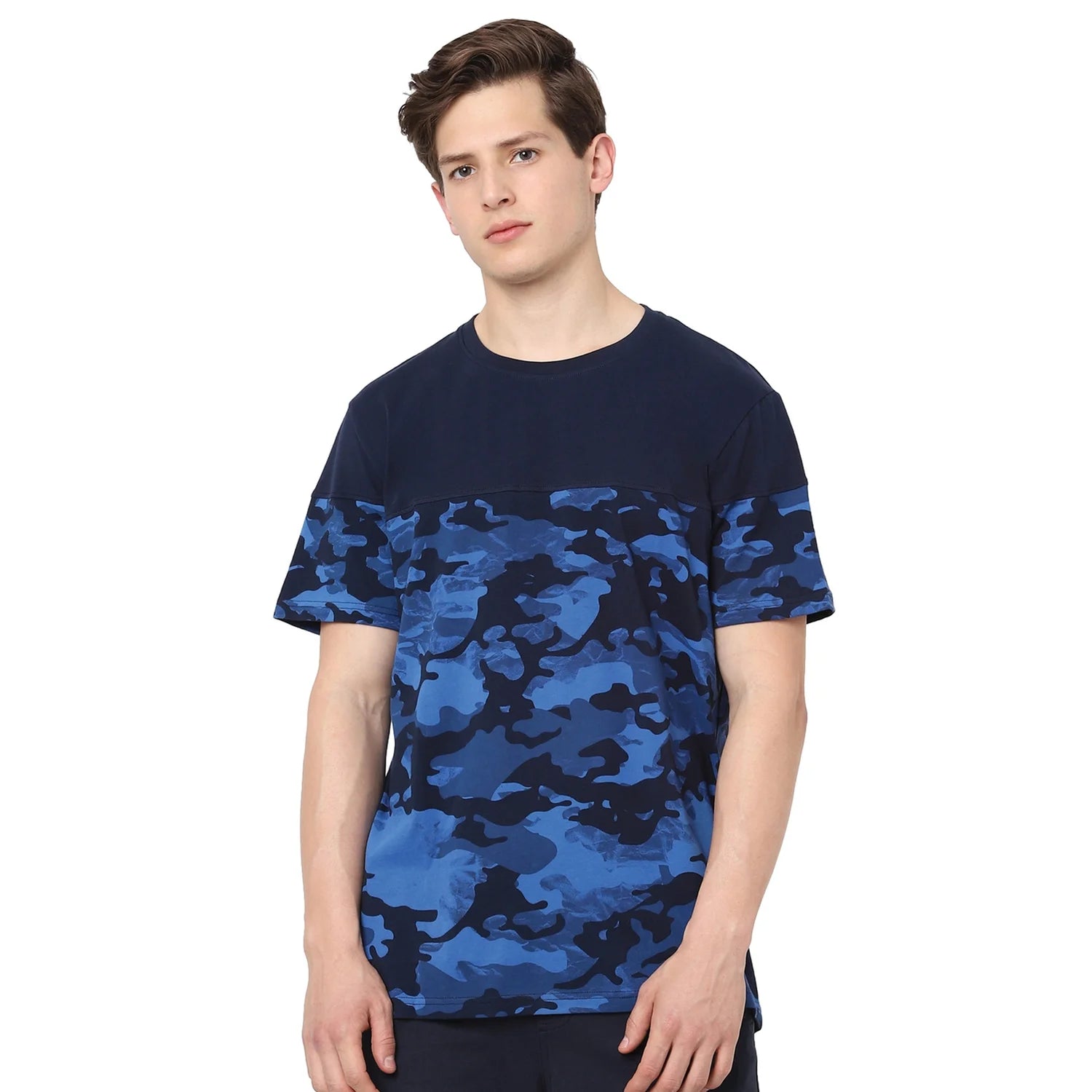 Celio* Camouflage Regular Fit Cotton Navy Blue T-Shirt
