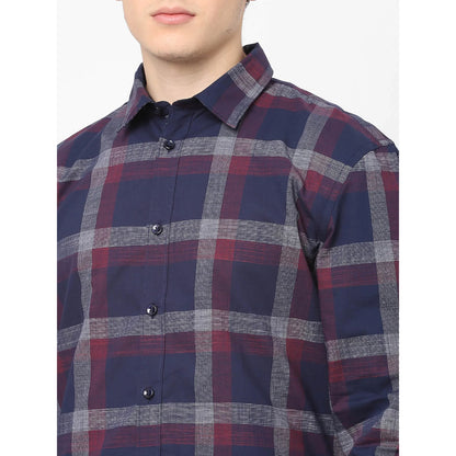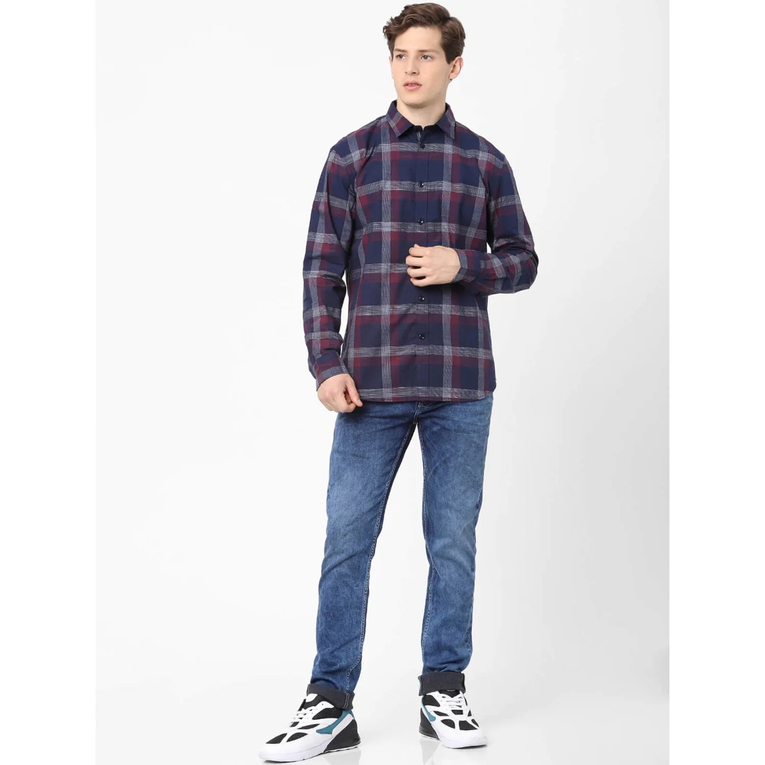 Celio* Checked Regular Fit Cotton Navy Blue Shirt