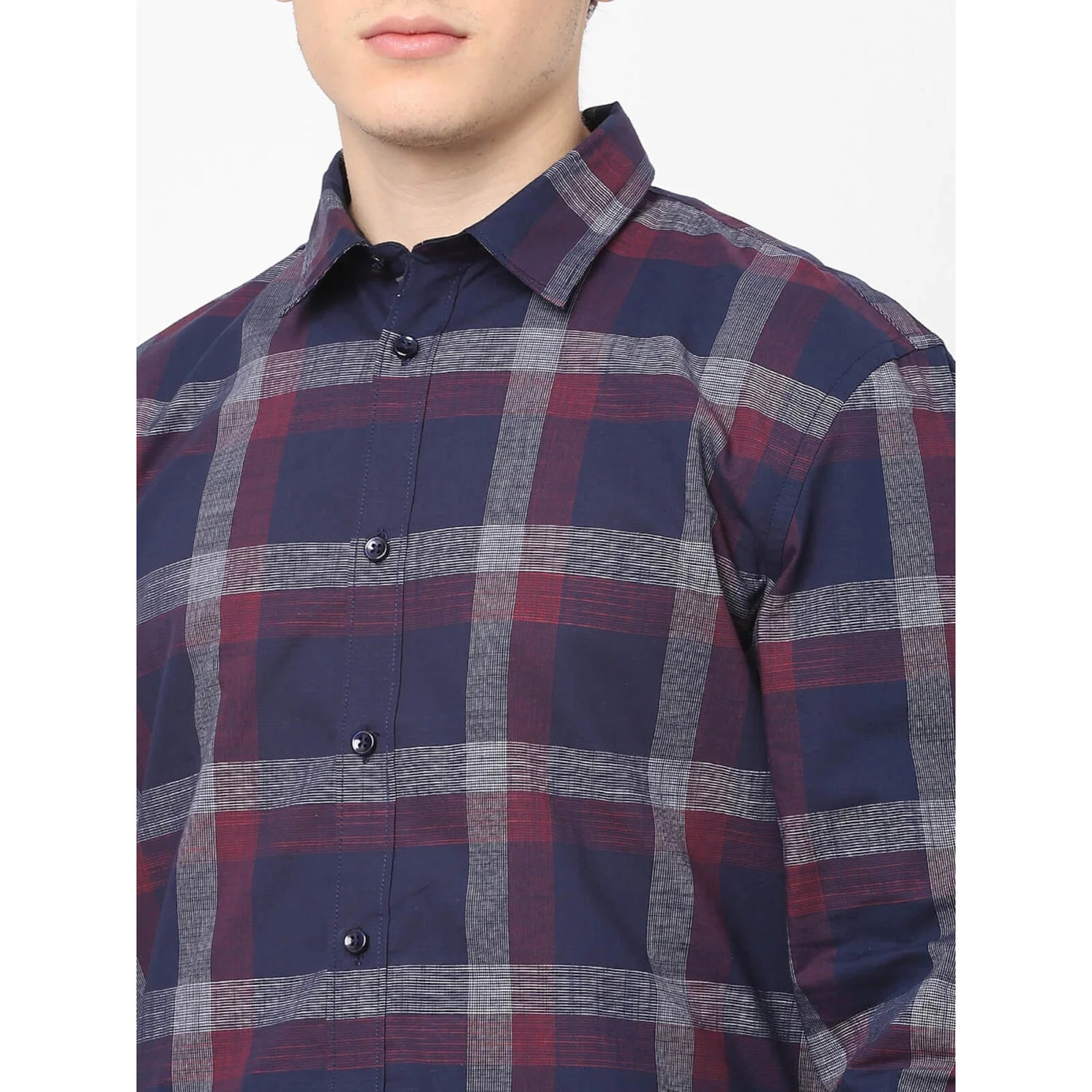 Upgrade your casual wardrobe with the Celio Men's Navy Blue Checks Full Sleeves Shirt. Crafted from soft cotton, this stylish long-sleeve shirt is perfect for any occasion. Disclaimer: All other items in the image are only for display purposes and will not be a part of the delivery content. Product colour may slightly vary due to photographic lighting sources. Country of Origin - India.