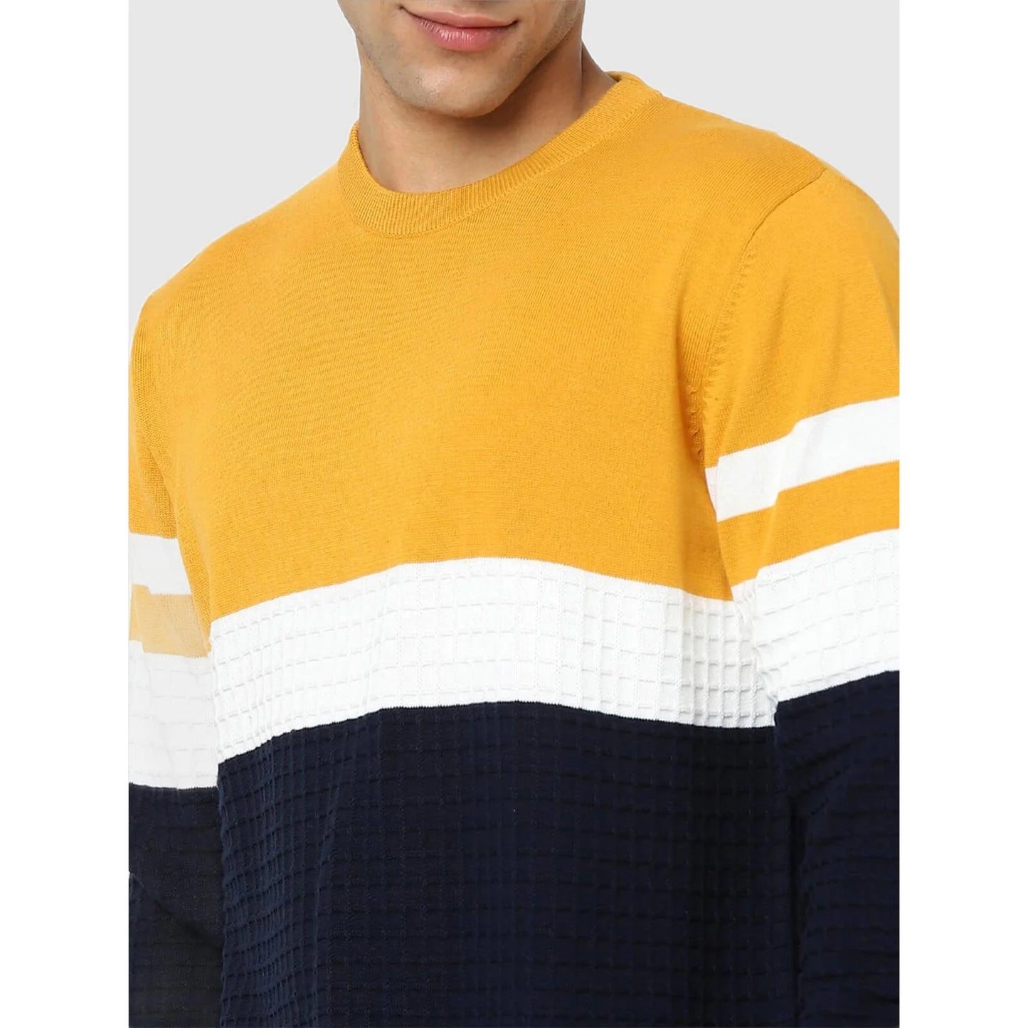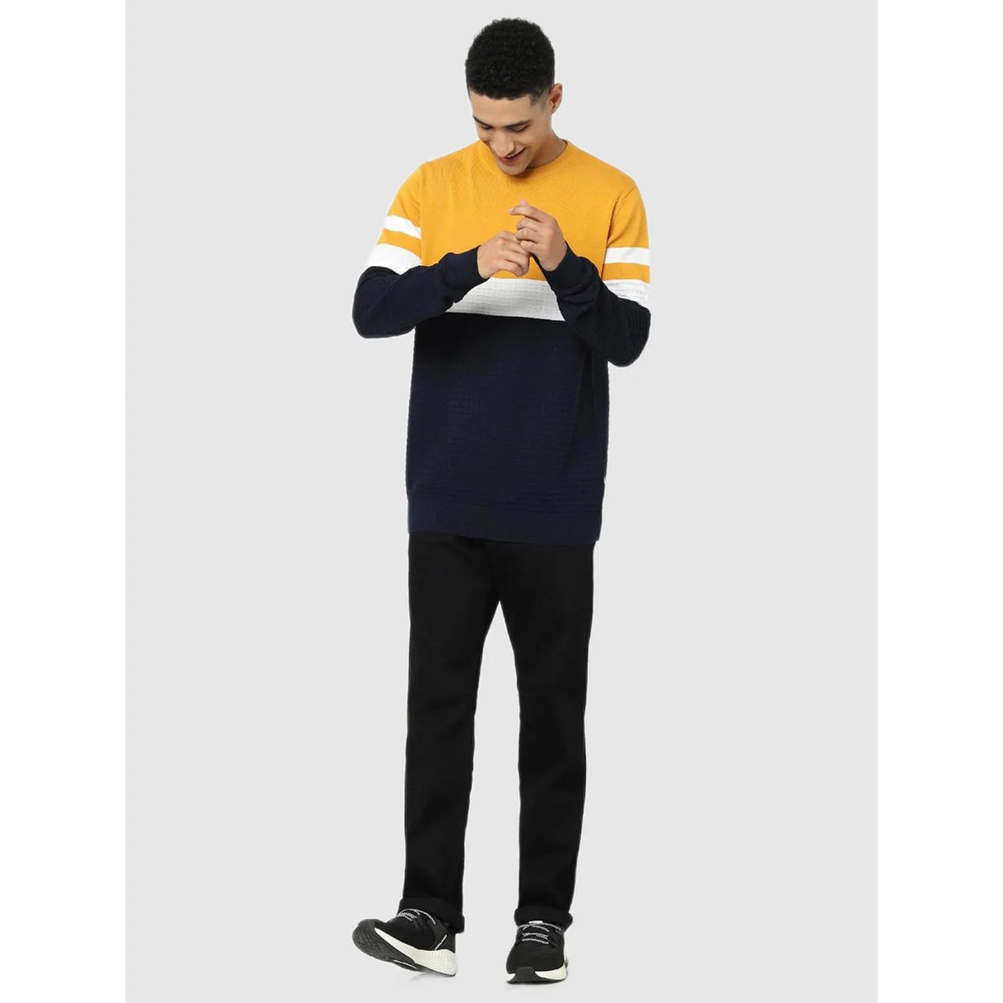 Celio* Colourblock Regular Fit Cotton Navy Blue Sweater