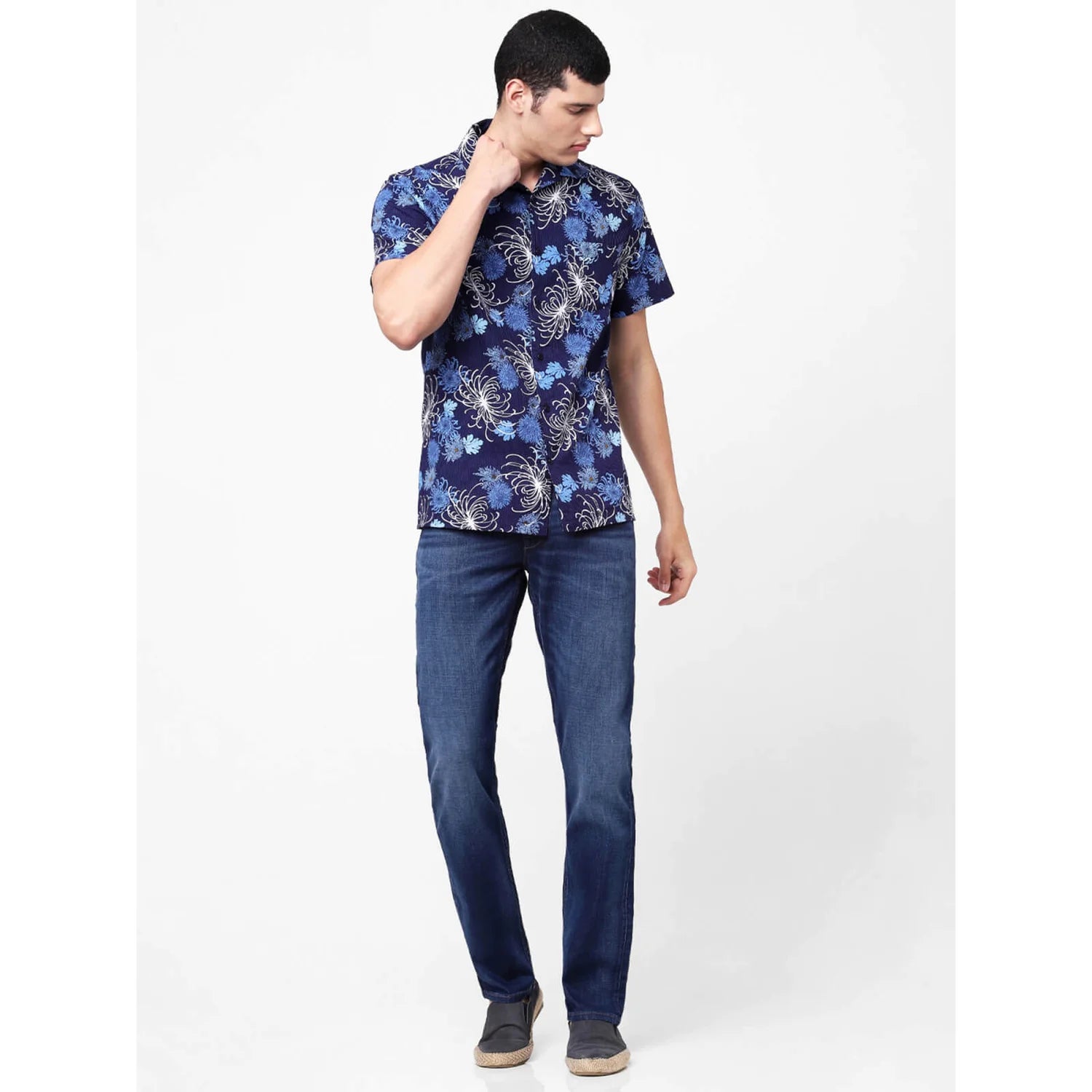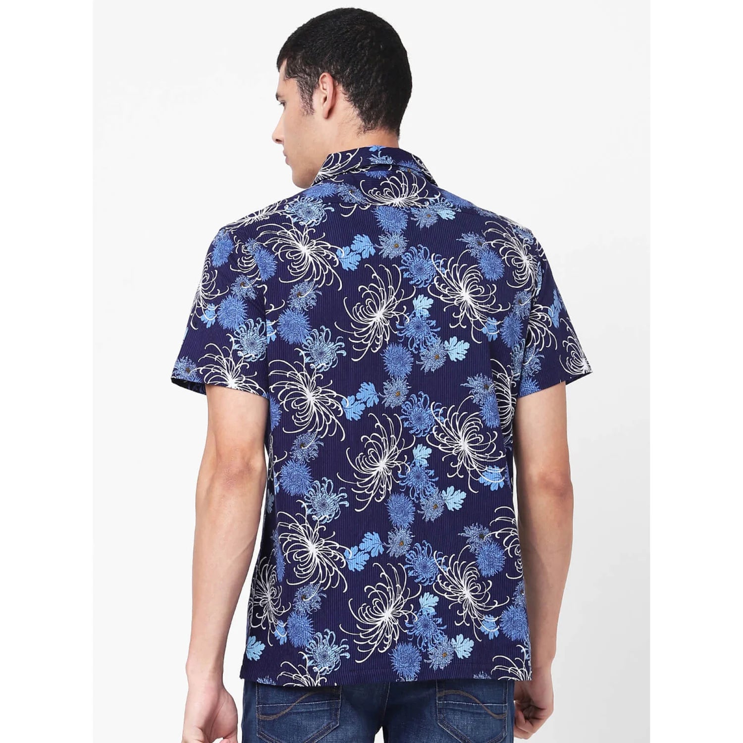 Celio* Floral Regular Fit Cotton Navy Blue Shirt