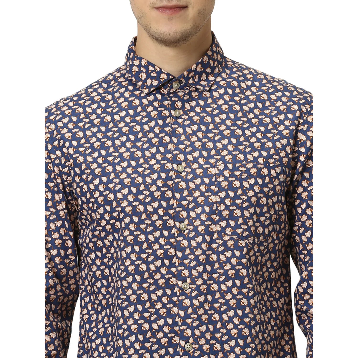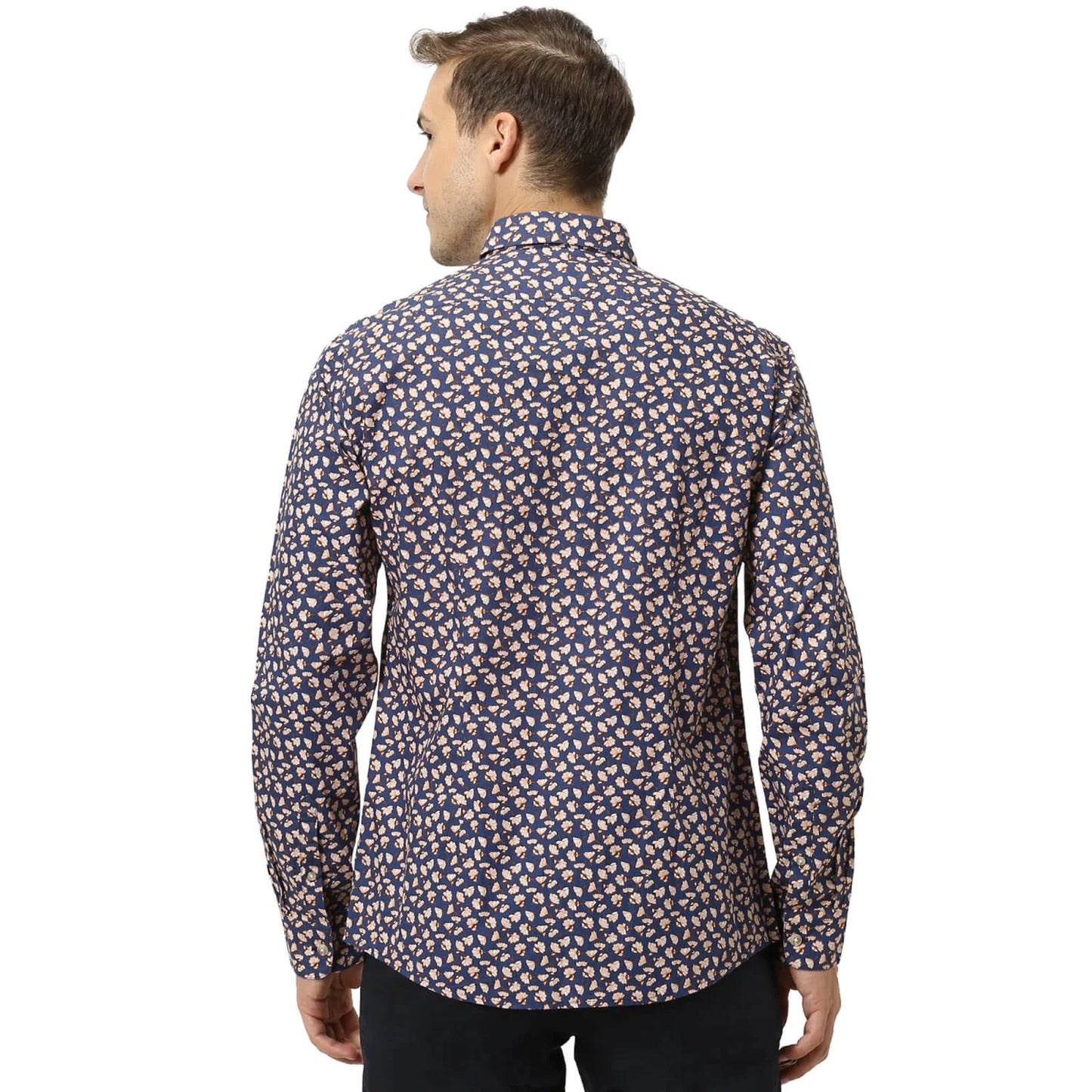 Celio* Floral Regular Fit Cotton Navy Blue Shirt