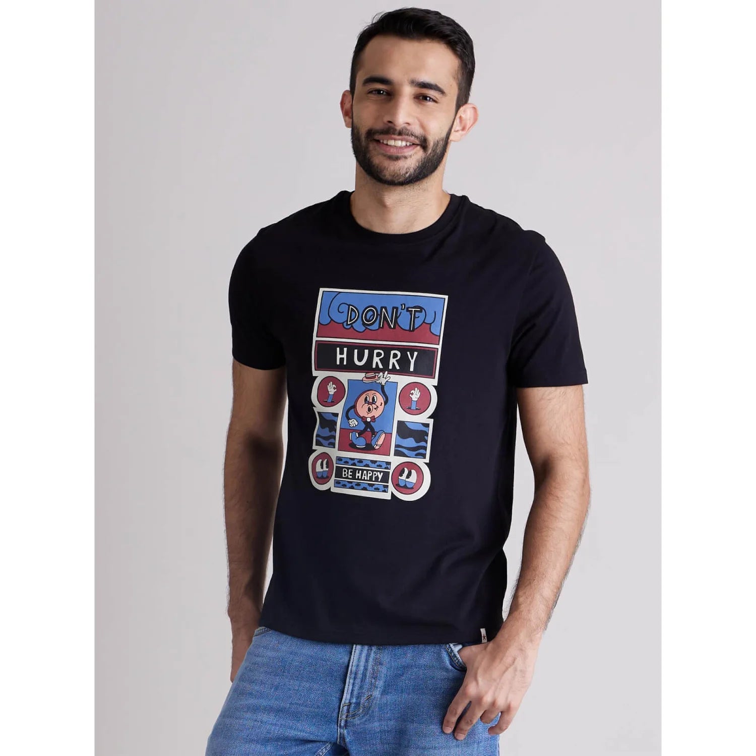 Celio* Graphics Regular Fit Cotton Navy Blue T-Shirt