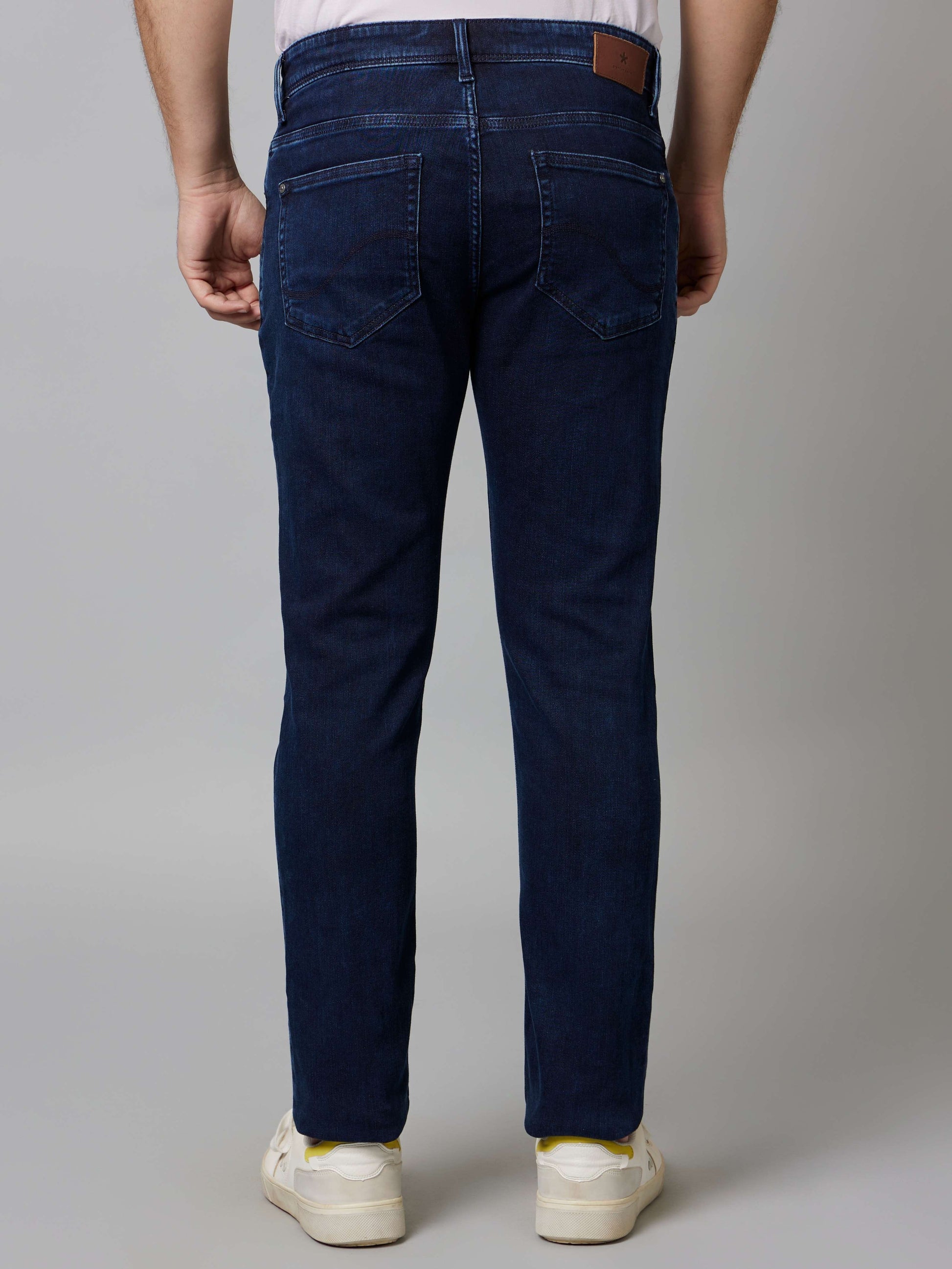 Celio Men Navy Blue Solid Slim Fit Cotton-Linen-Blend Jeans