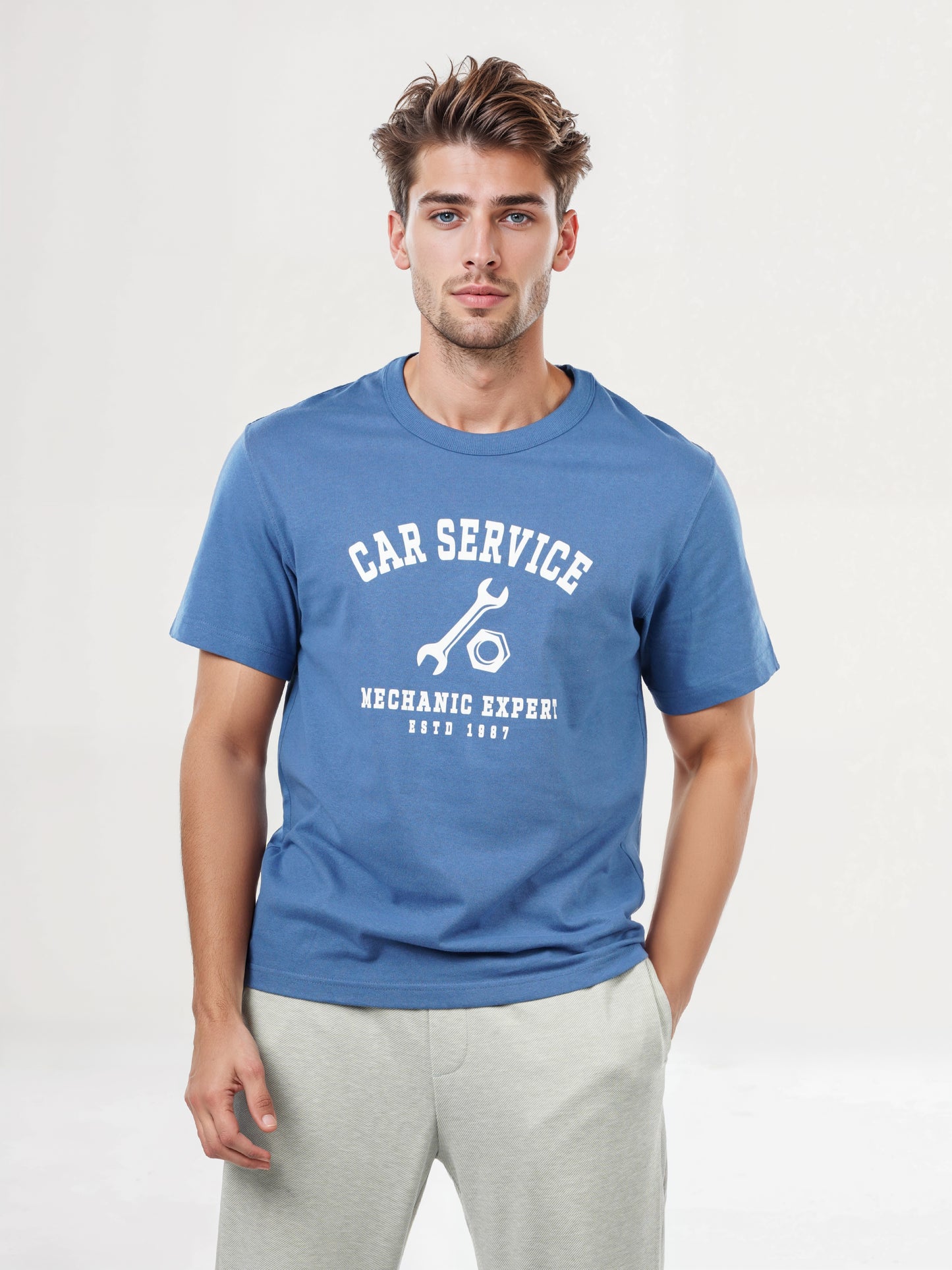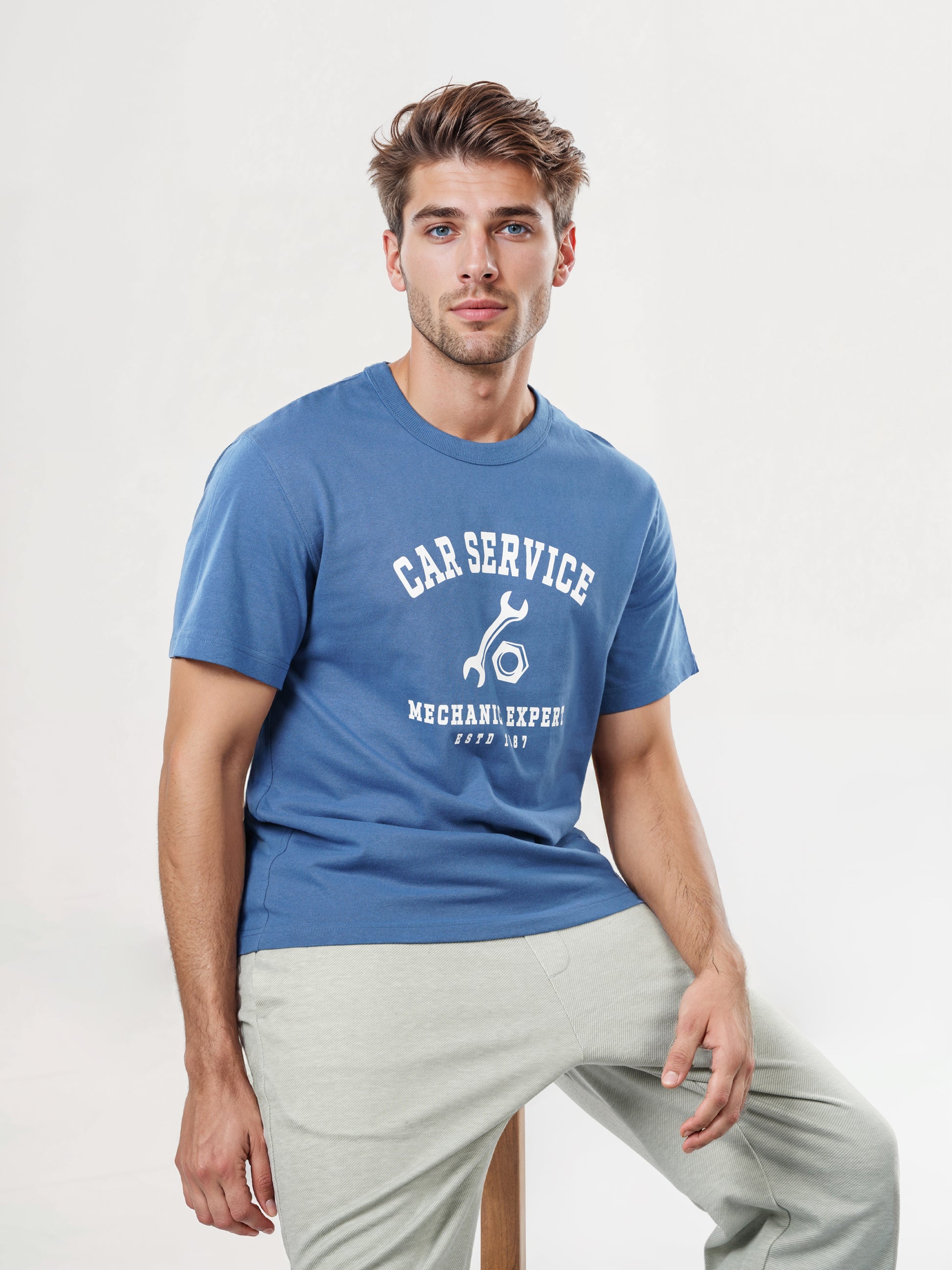 Shop the Celio Men Navy Blue Printed Boxy T-shirt, crafted from comfortable cotton. Ideal for casual outings, it features short sleeves and a stylish print for a trendy look. Disclaimer: All other items in the image are only for display purposes and will not be a part of the delivery content. Product colour may slightly vary due to photographic lighting sources. Country of Origin - India.