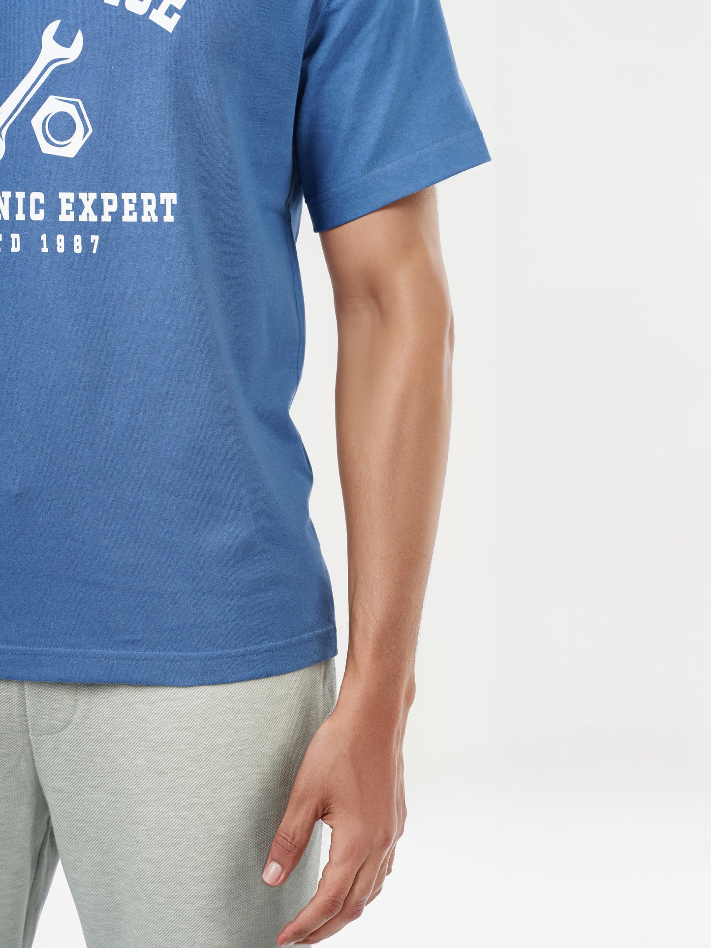 Celio* Printed Boxy Fit Cotton Navy Blue T-Shirts