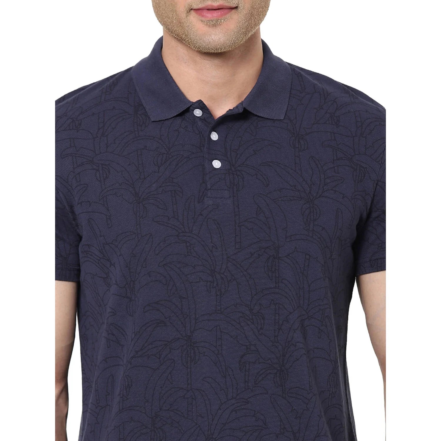 Shop the Celio Men's Vepalmito Navy Blue Polo T-Shirt in a stylish blue print. Crafted from cotton, this short-sleeved tee is perfect for casual occasions. Disclaimer: All other items in the image are only for display purposes and will not be a part of the delivery content. Product colour may slightly vary due to photographic lighting sources. Country of Origin - India.