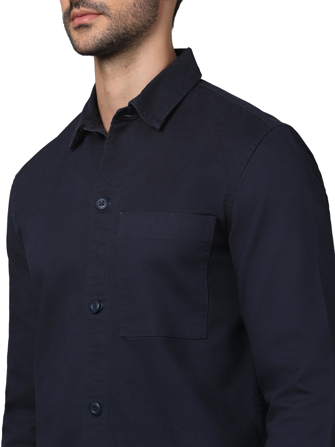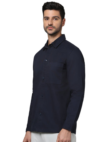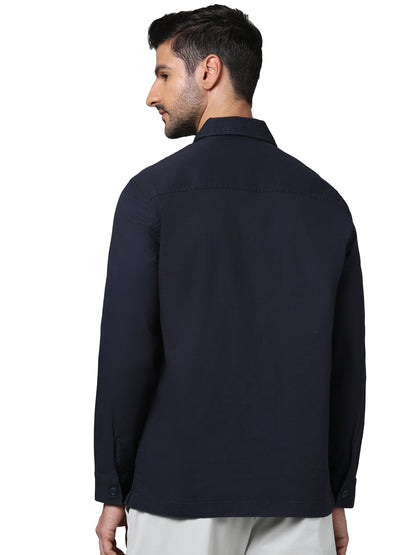 Celio* Solid Oversized Cotton Navy Blue Shirt