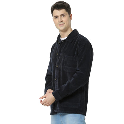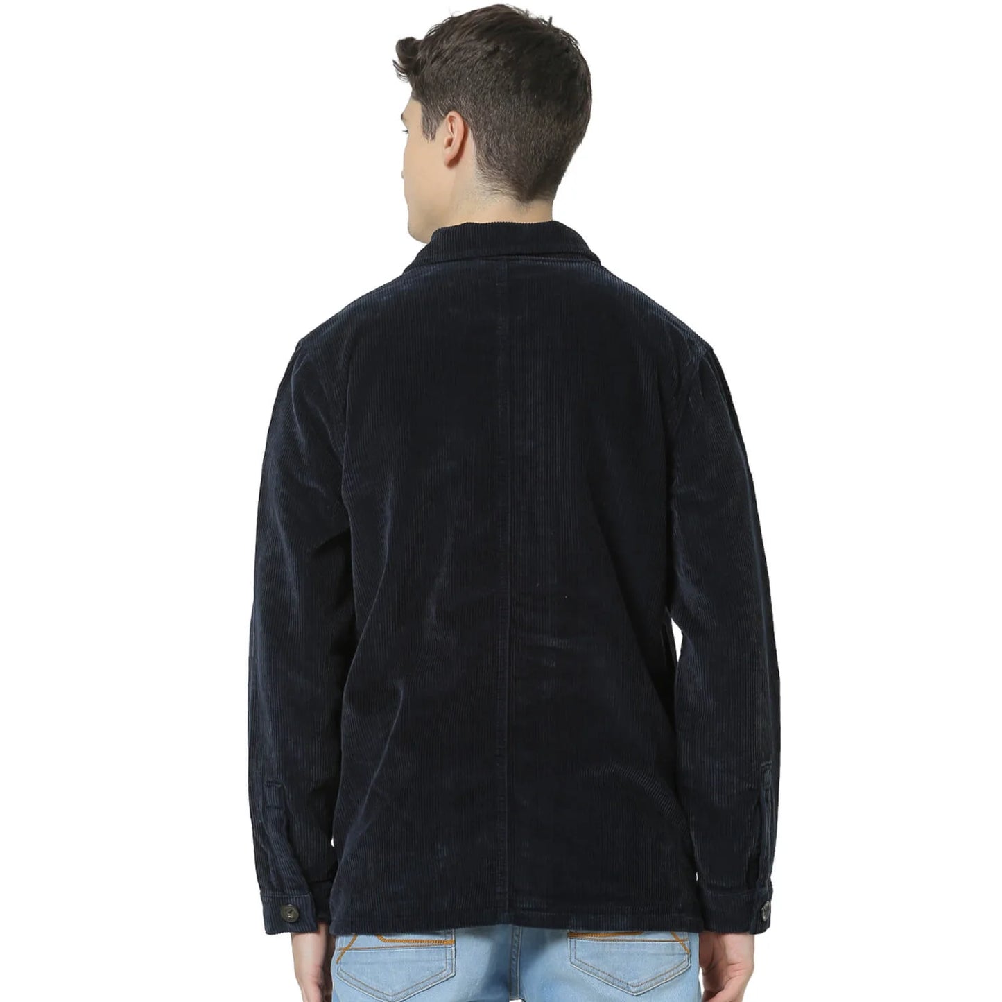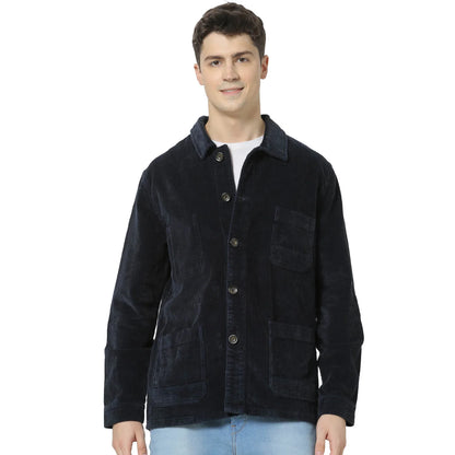 Celio* Solid Regular Fit Cotton Navy Blue Jacket