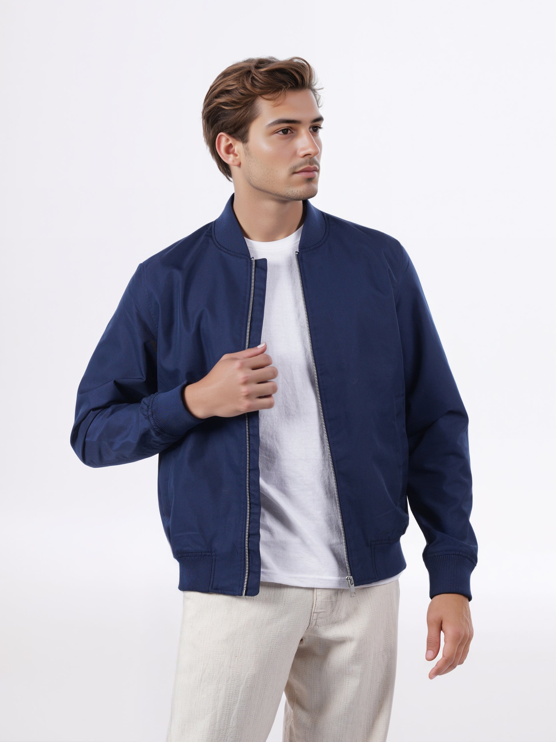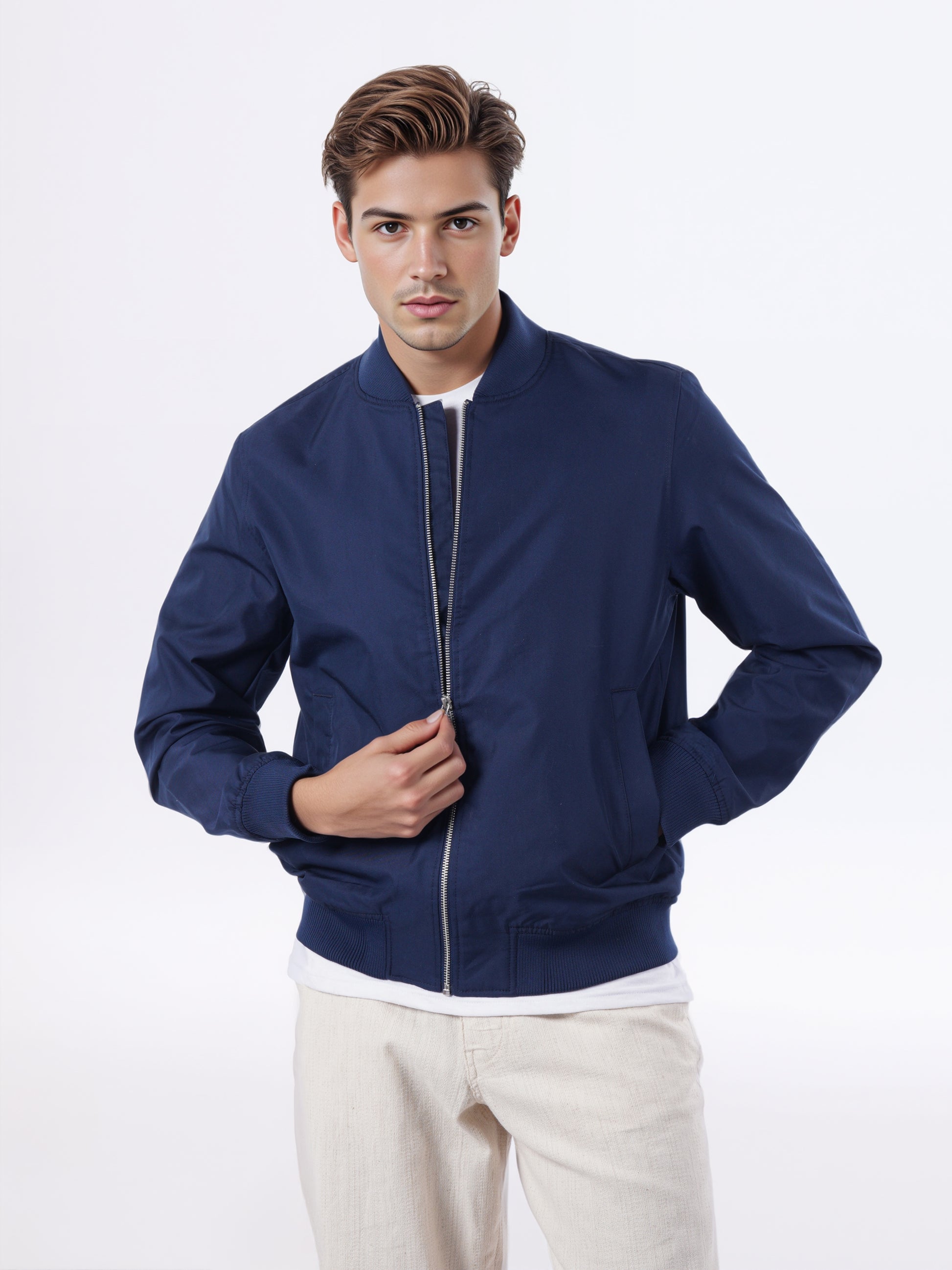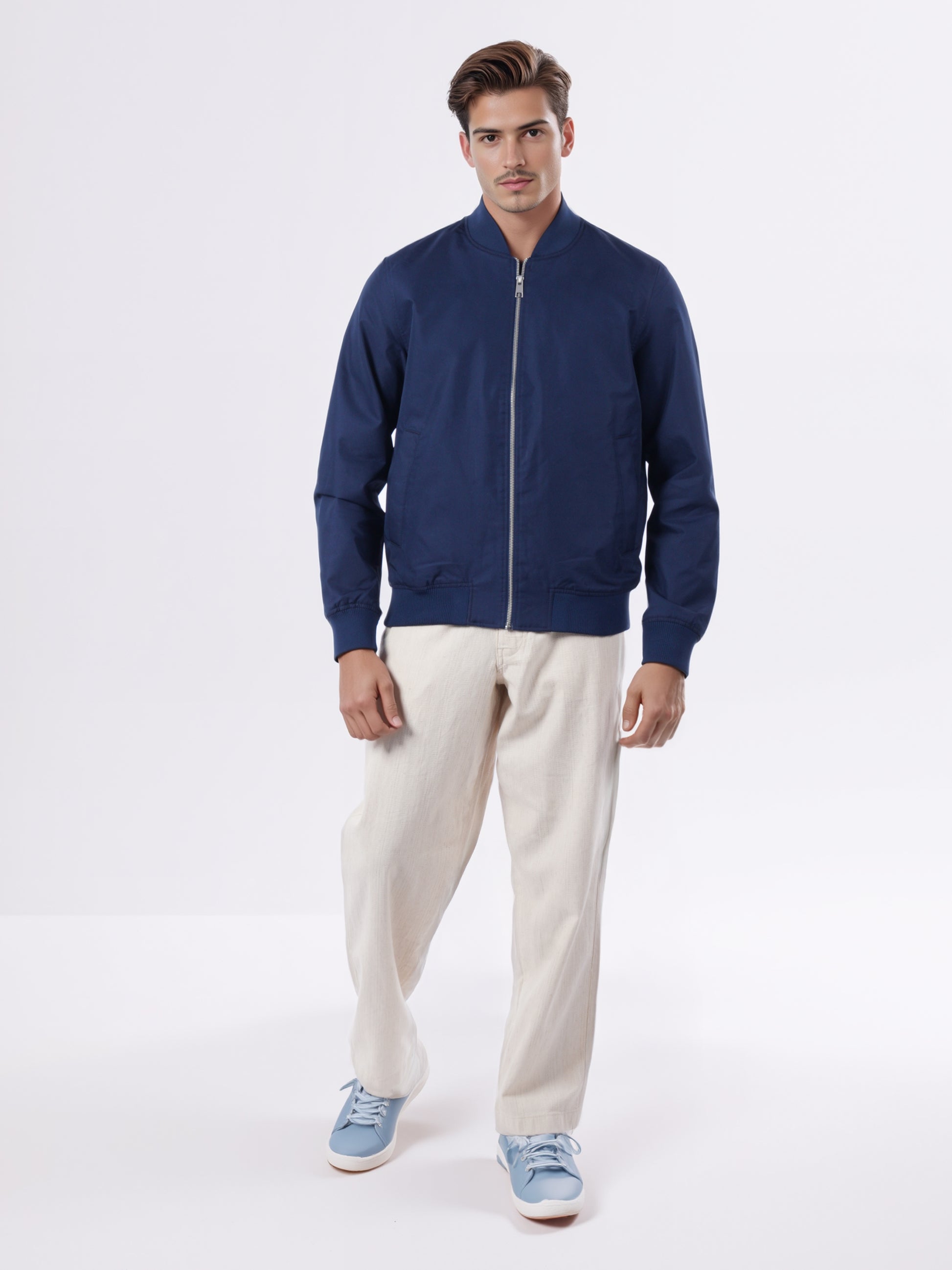 Explore casual style with the Celio Men Navy Blue Cotton Fashion Jacket. Its solid design, long sleeves, and regular fit make it a perfect choice for any occasion. Disclaimer: All other items in the image are only for display purposes and will not be a part of the delivery content. Product colour may slightly vary due to photographic lighting sources. Country of Origin - India.