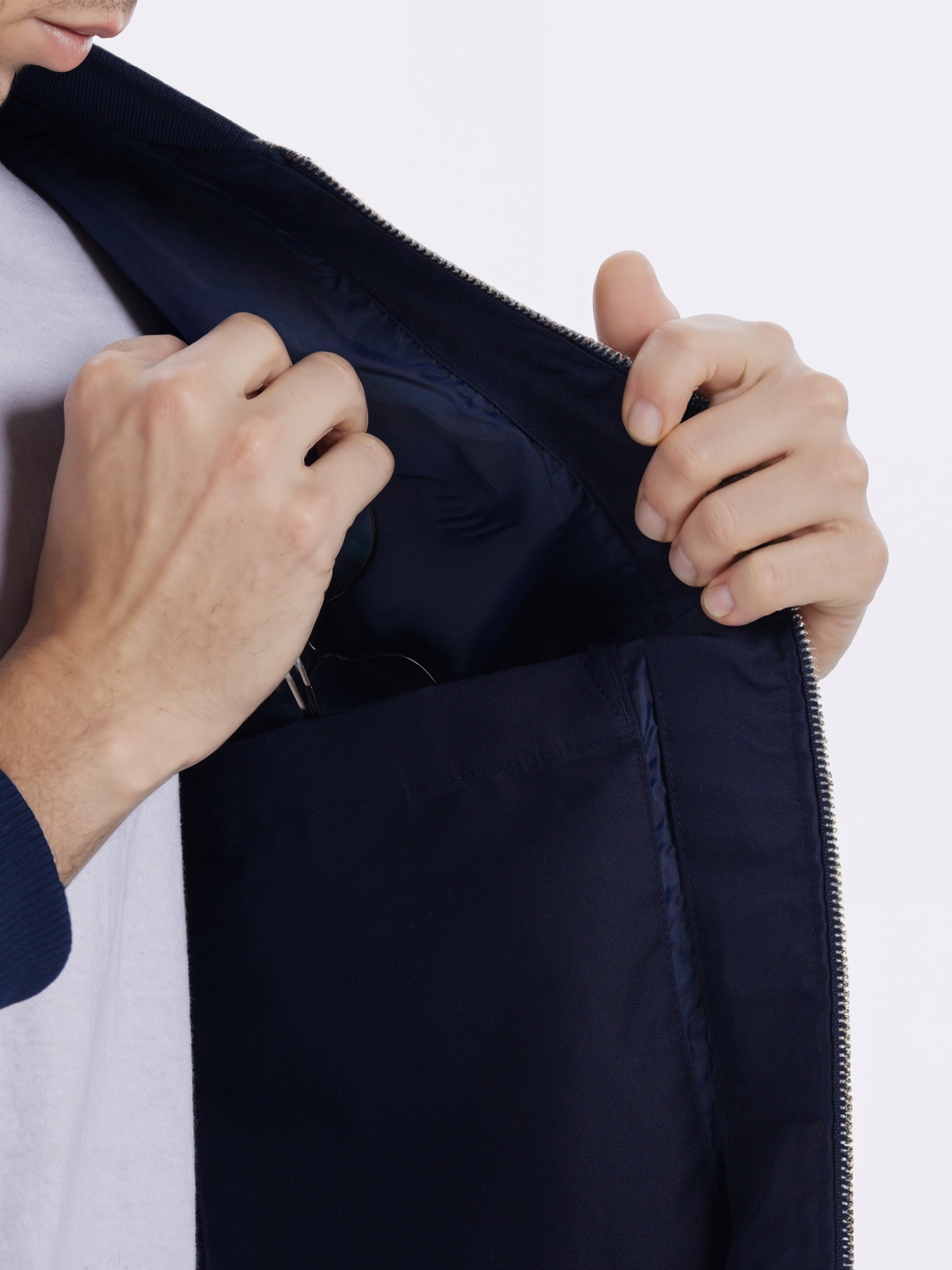 Celio* Men Navy Blue Solid Regular Fit Cotton Jackets