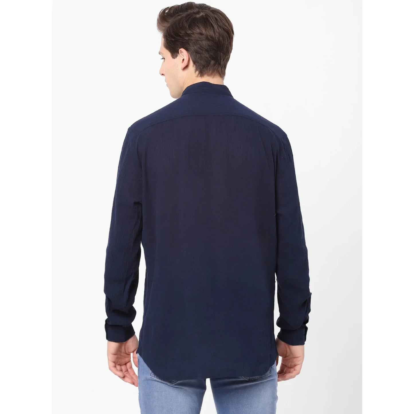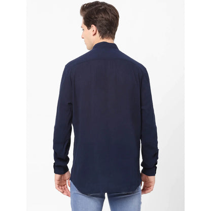 Celio* Solid Regular Fit Cotton Navy Blue Shirt