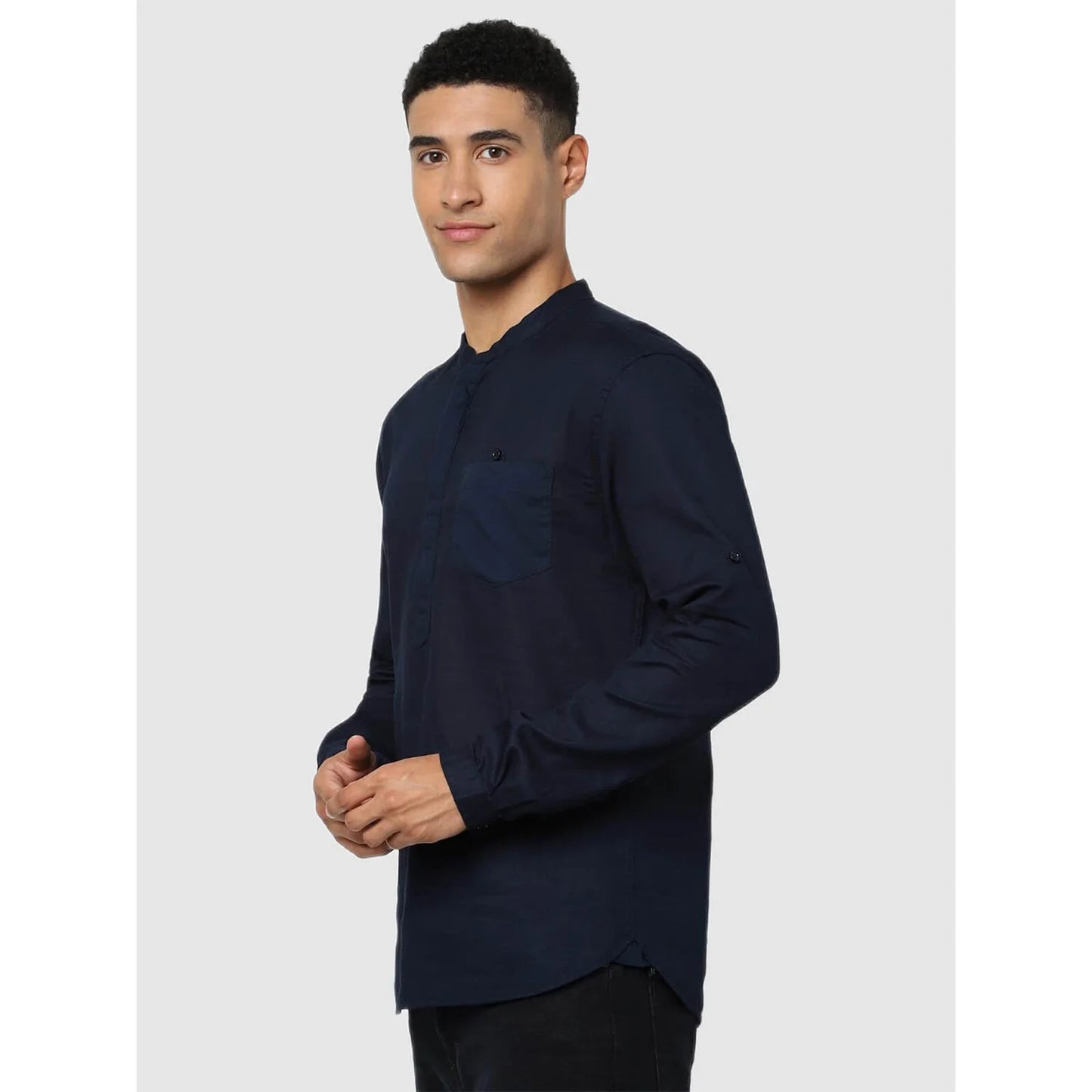Shop the Celio Navy Solid Regular Fit Shirt for men, crafted from soft cotton. Perfect for casual occasions, it features long sleeves and a stylish navy blue hue. Disclaimer: All other items in the image are only for display purposes and will not be a part of the delivery content. Product colour may slightly vary due to photographic lighting sources. Country of Origin - India.