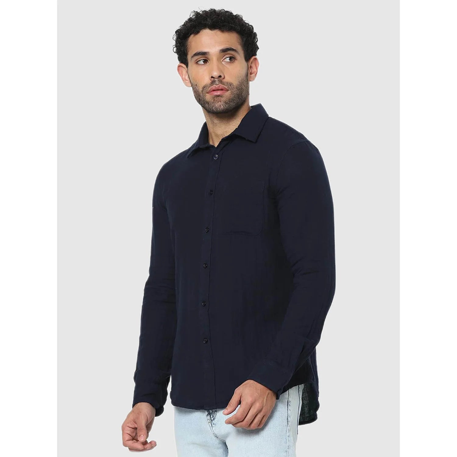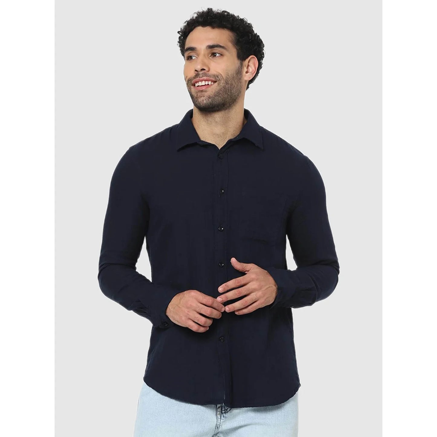 Celio* Solid Regular Fit Cotton Navy Blue Shirt