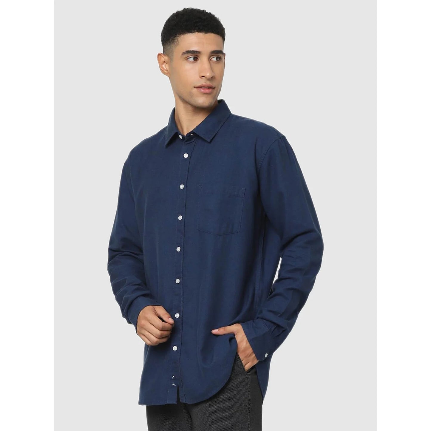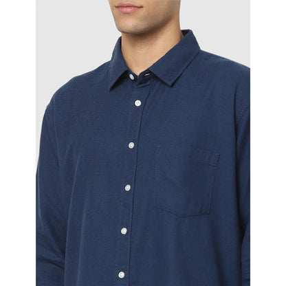Celio* Solid Regular Fit Cotton Navy Blue Shirt
