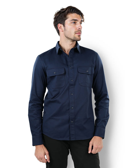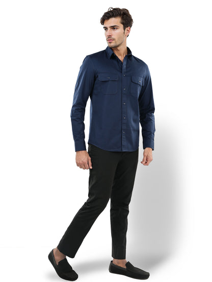 Celio* Solid Regular Fit Cotton Navy Blue Shirt