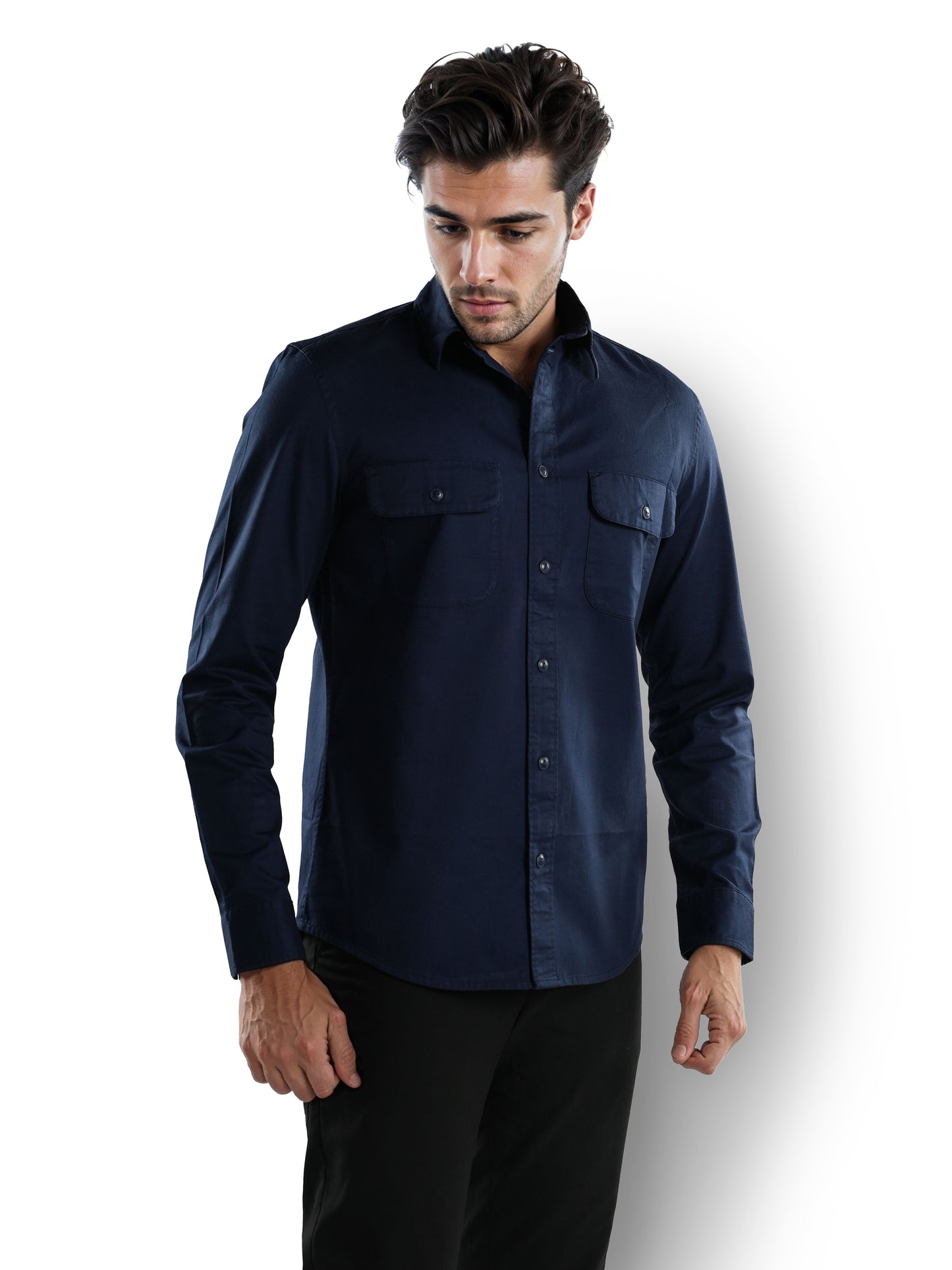 Elevate your casual wardrobe with the Celio Men Navy Blue Spread Collar Shirt. Made from comfortable cotton, it features long sleeves and a regular fit, perfect for everyday wear. Disclaimer: All other items in the image are only for display purposes and will not be a part of the delivery content. Product colour may slightly vary due to photographic lighting sources. Country of Origin - India.