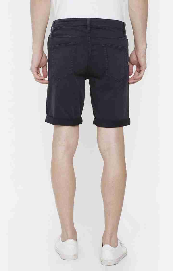 Discover Celio Men's Navy Blue Solid Shorts in Mohitobm Navy Blue Ocean. Crafted from comfortable cotton, these casual shorts in black are perfect for any laid-back occasion. Disclaimer: All other items in the image are only for display purposes and will not be a part of the delivery content. Product colour may slightly vary due to photographic lighting sources. Country of Origin - India.