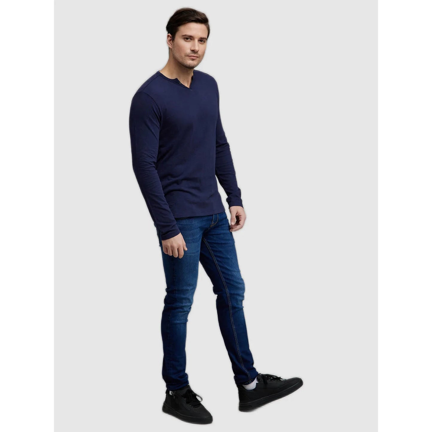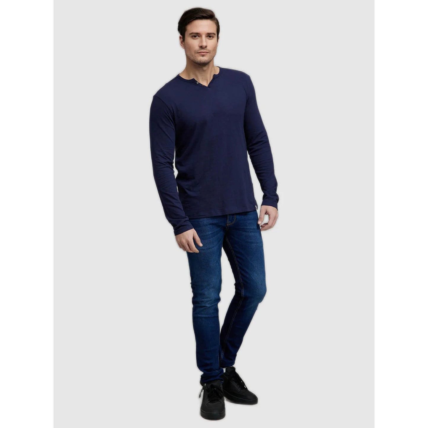 Elevate your casual wardrobe with Celio's Navy Blue Long Sleeve T-Shirt. Crafted from comfortable cotton, this stylish tee is perfect for men seeking a timeless look. Disclaimer: All other items in the image are only for display purposes and will not be a part of the delivery content. Product colour may slightly vary due to photographic lighting sources. Country of Origin - India.