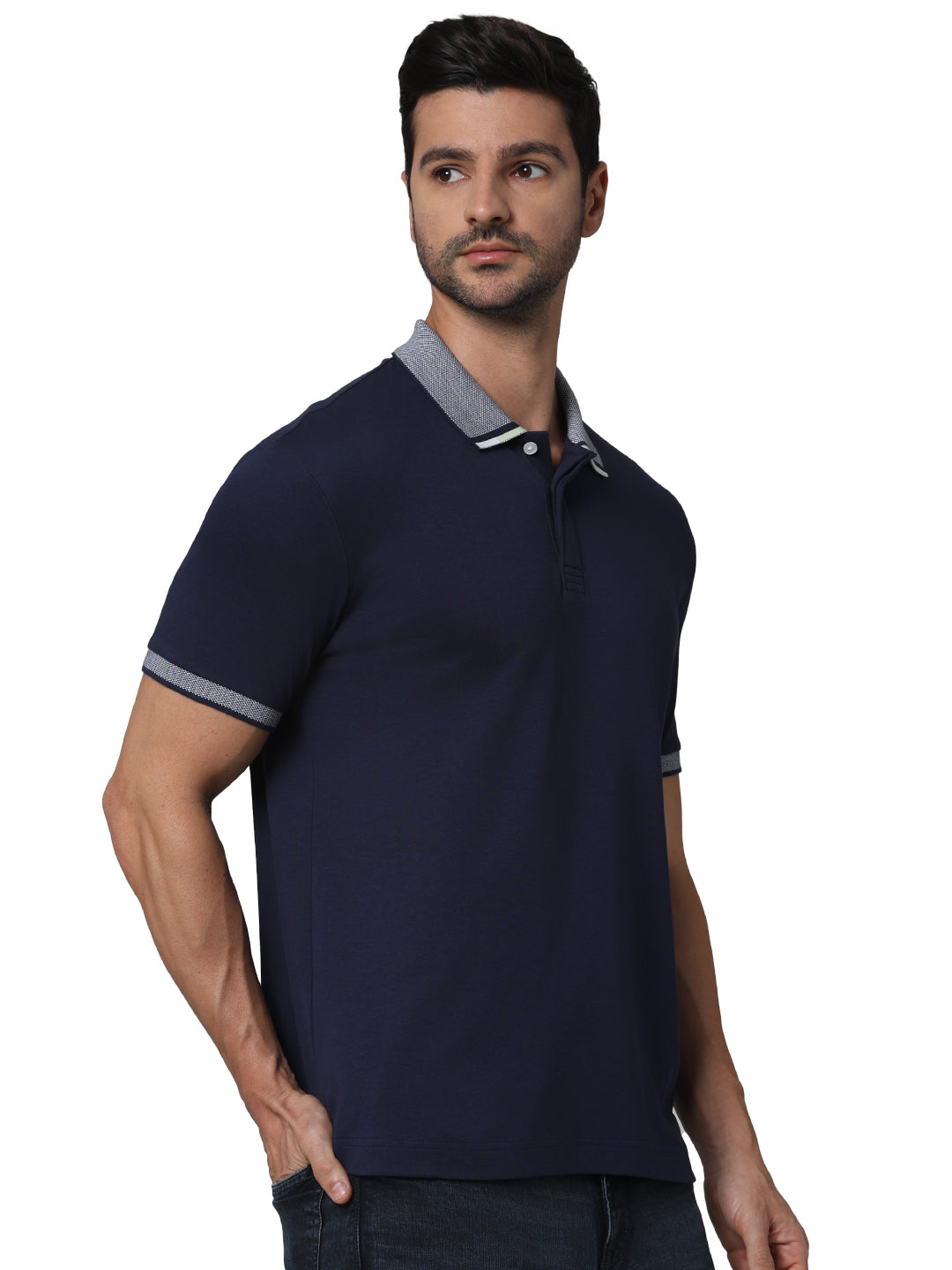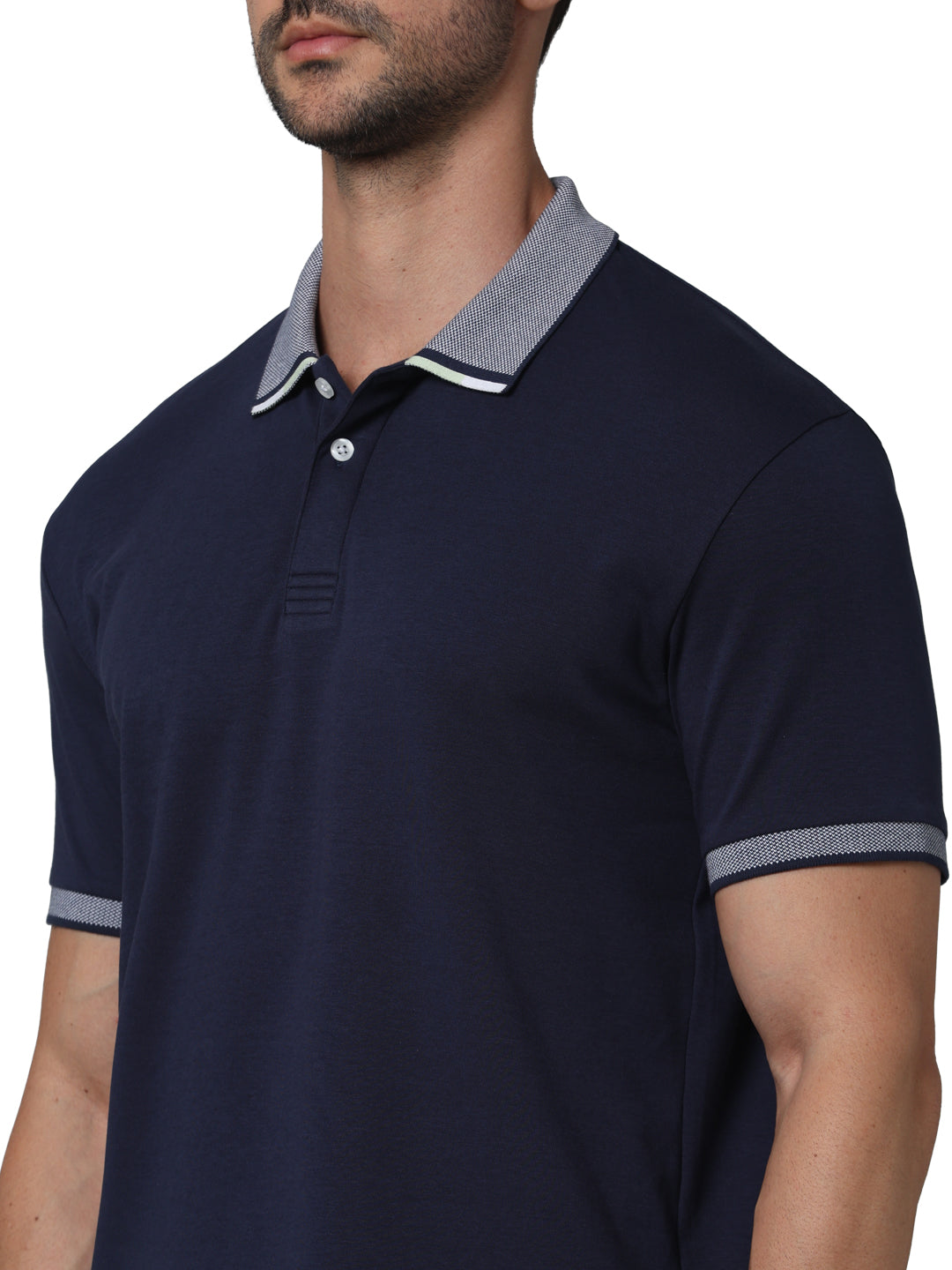 Elevate your casual wardrobe with the Celio Men Navy Blue Polo. Crafted from soft cotton, this regular fit polo features a classic collar and short sleeves for versatile style. Disclaimer: All other items in the image are only for display purposes and will not be a part of the delivery content. Product colour may slightly vary due to photographic lighting sources. Country of Origin - India.