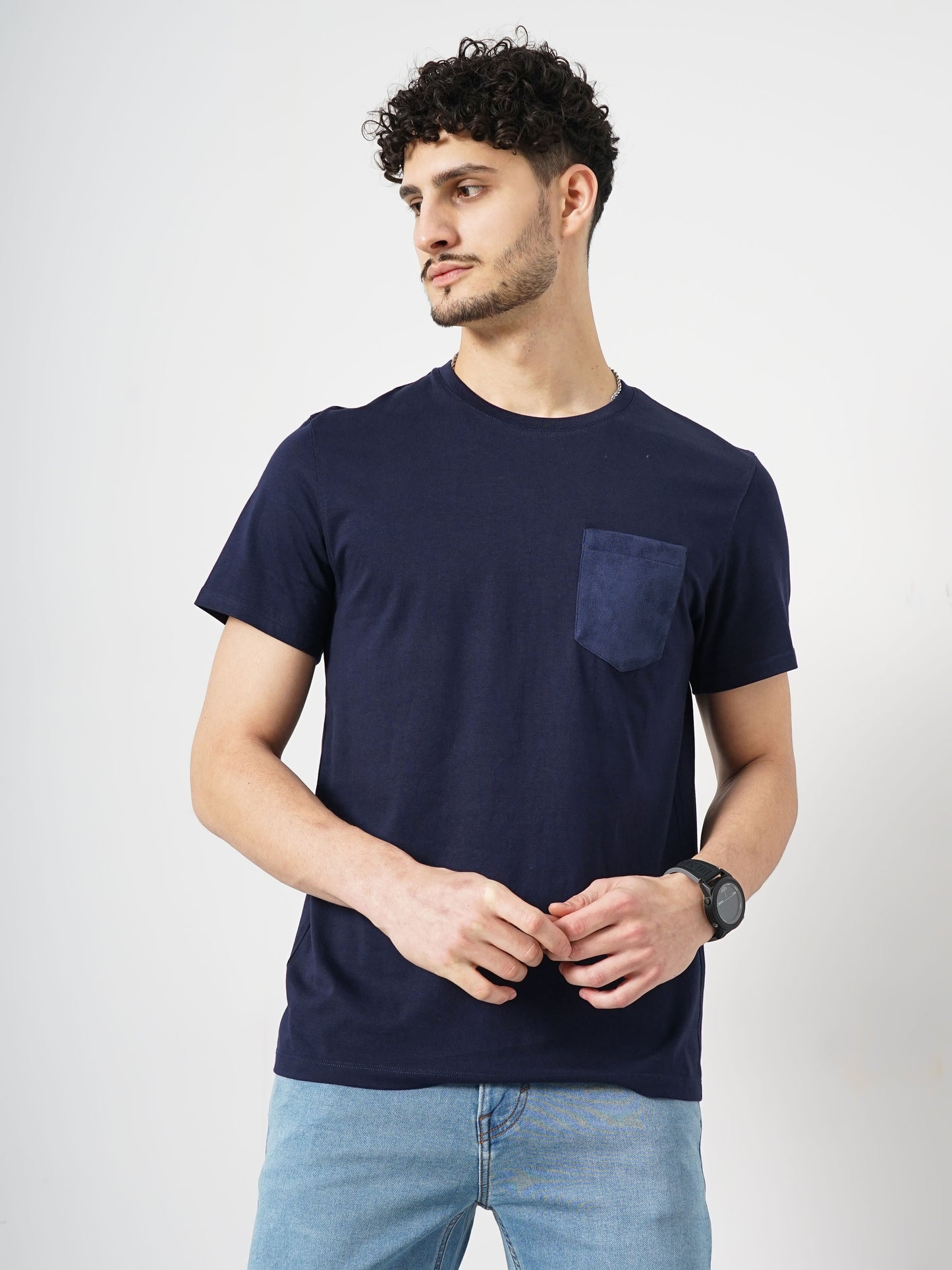 Elevate your casual wardrobe with the Celio Men Solid Regular Fit T-shirt. Made from soft cotton, its navy blue hue and short sleeves ensure comfort and style for any occasion. Disclaimer: All other items in the image are only for display purposes and will not be a part of the delivery content. Product colour may slightly vary due to photographic lighting sources. Country of Origin - India.