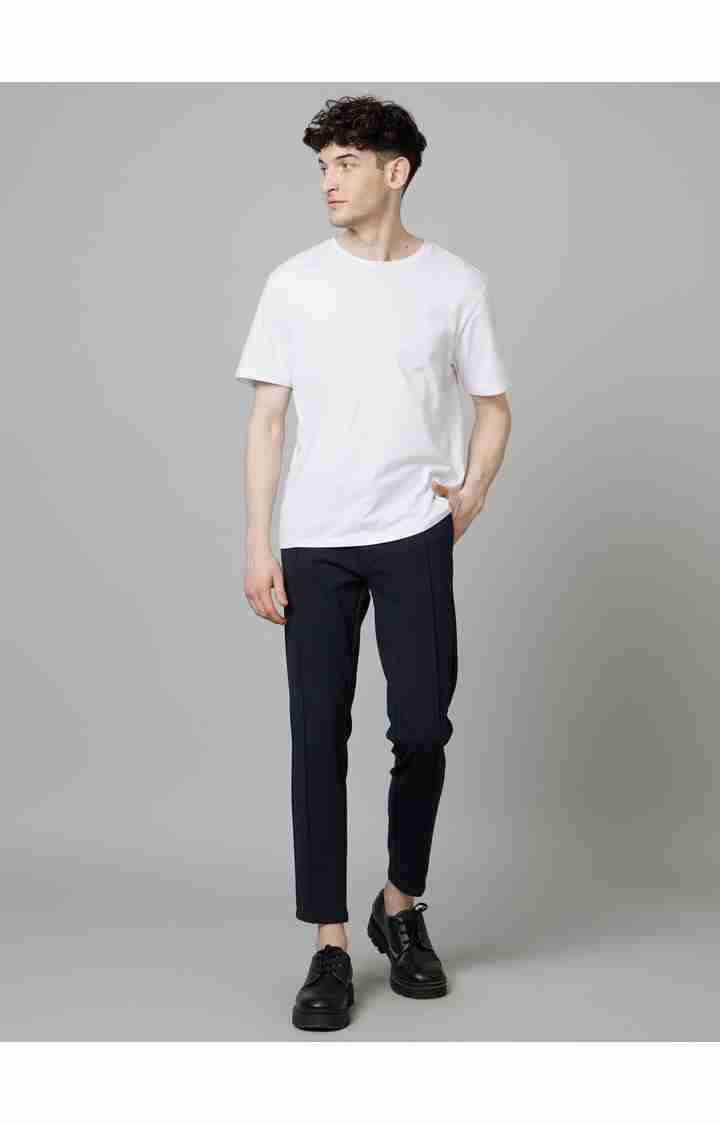 Elevate your casual wardrobe with Celio Men's Navy Blue Solid 24 Hr Pant. Crafted from soft cotton, these Navy Blue pants offer comfort and style for any occasion. Disclaimer: All other items in the image are only for display purposes and will not be a part of the delivery content. Product colour may slightly vary due to photographic lighting sources. Country of Origin - India.