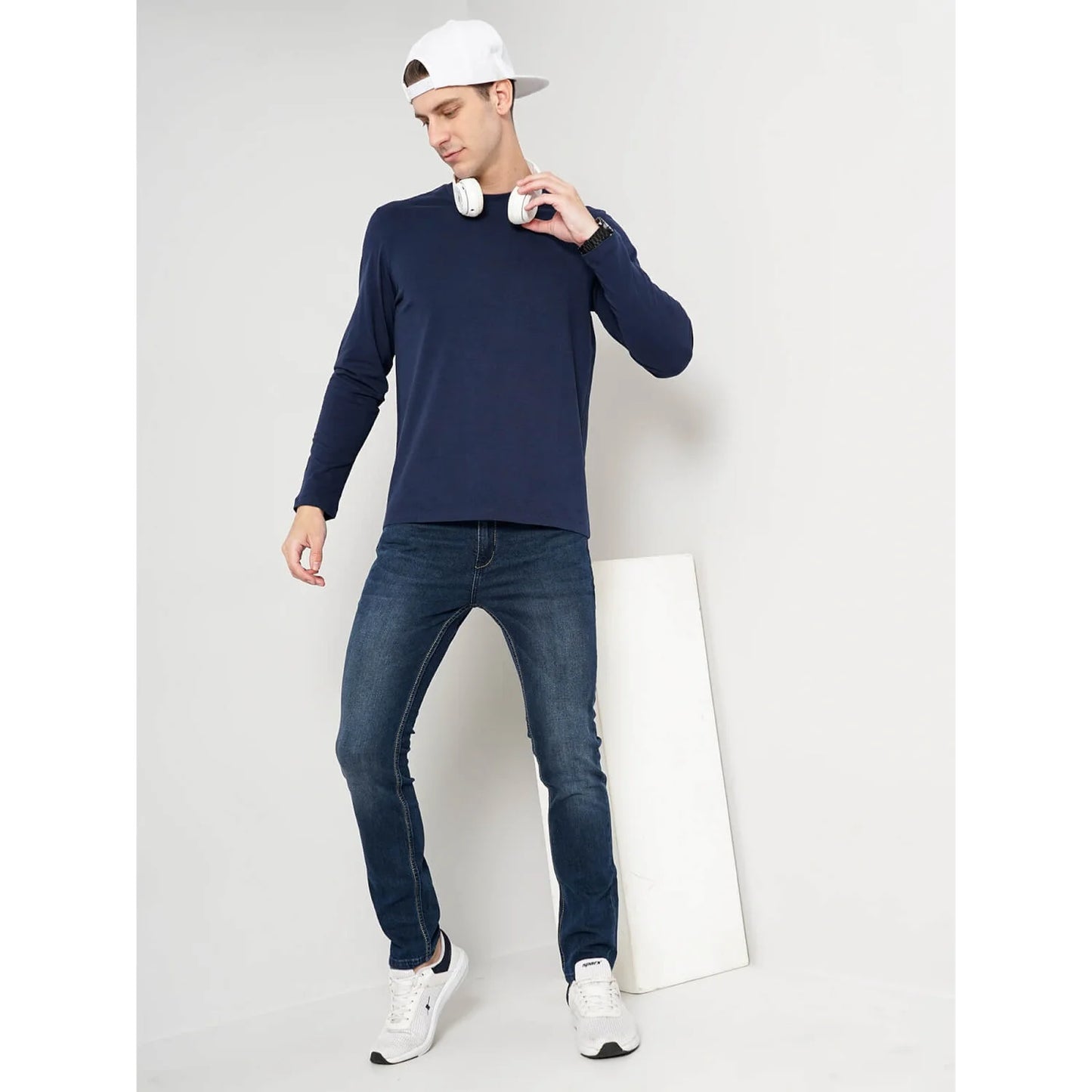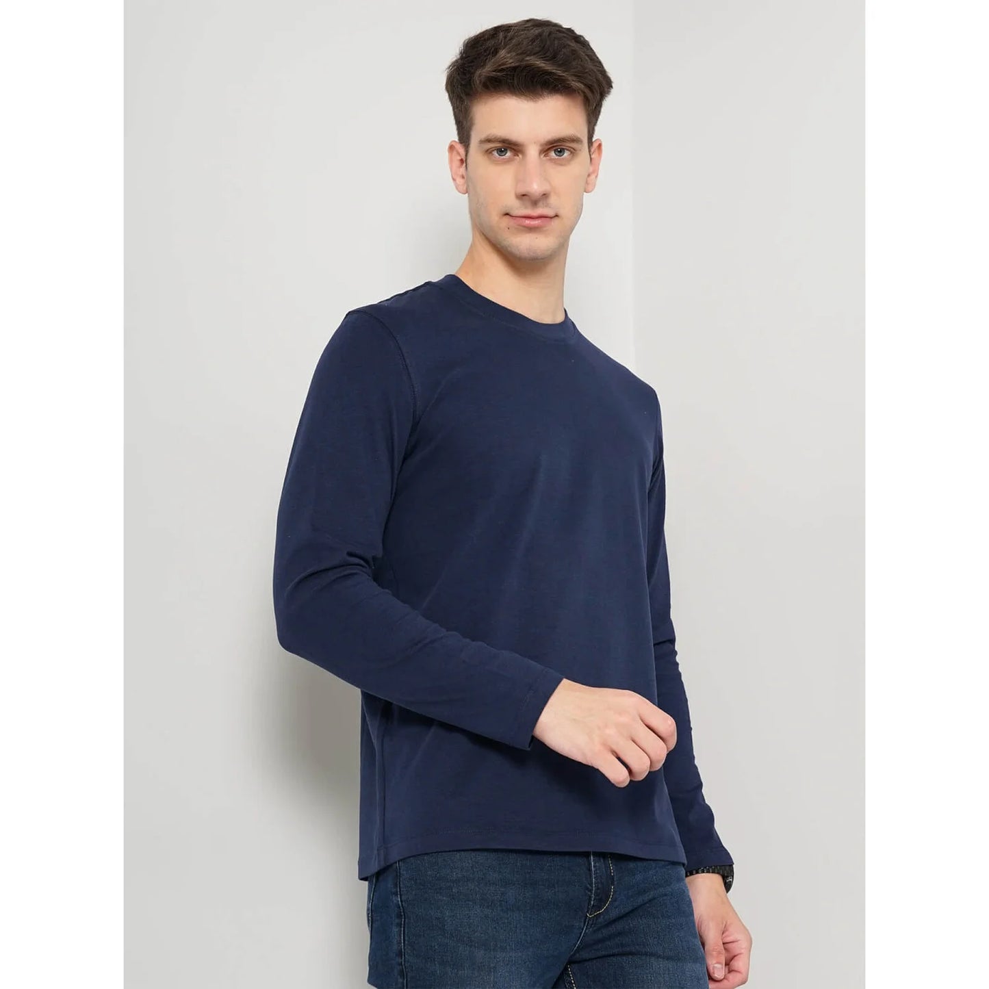 Elevate your casual wardrobe with the Celio Navy Blue Solid Cotton T-Shirt. This Navy Blue Blue long-sleeve tee is crafted from soft cotton, perfect for men's everyday wear. Disclaimer: All other items in the image are only for display purposes and will not be a part of the delivery content. Product colour may slightly vary due to photographic lighting sources. Country of Origin - India.