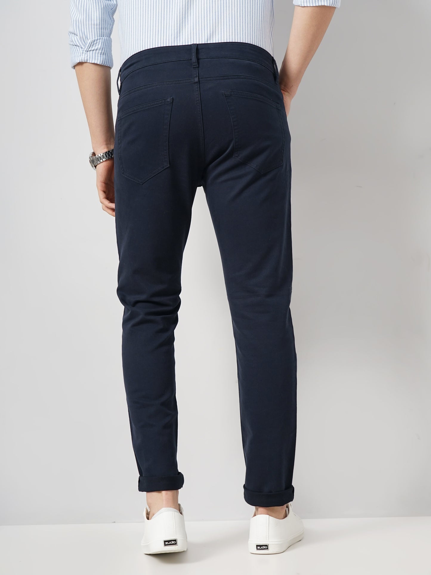Celio* Cotton Slim Fit Navy Blue Trouser