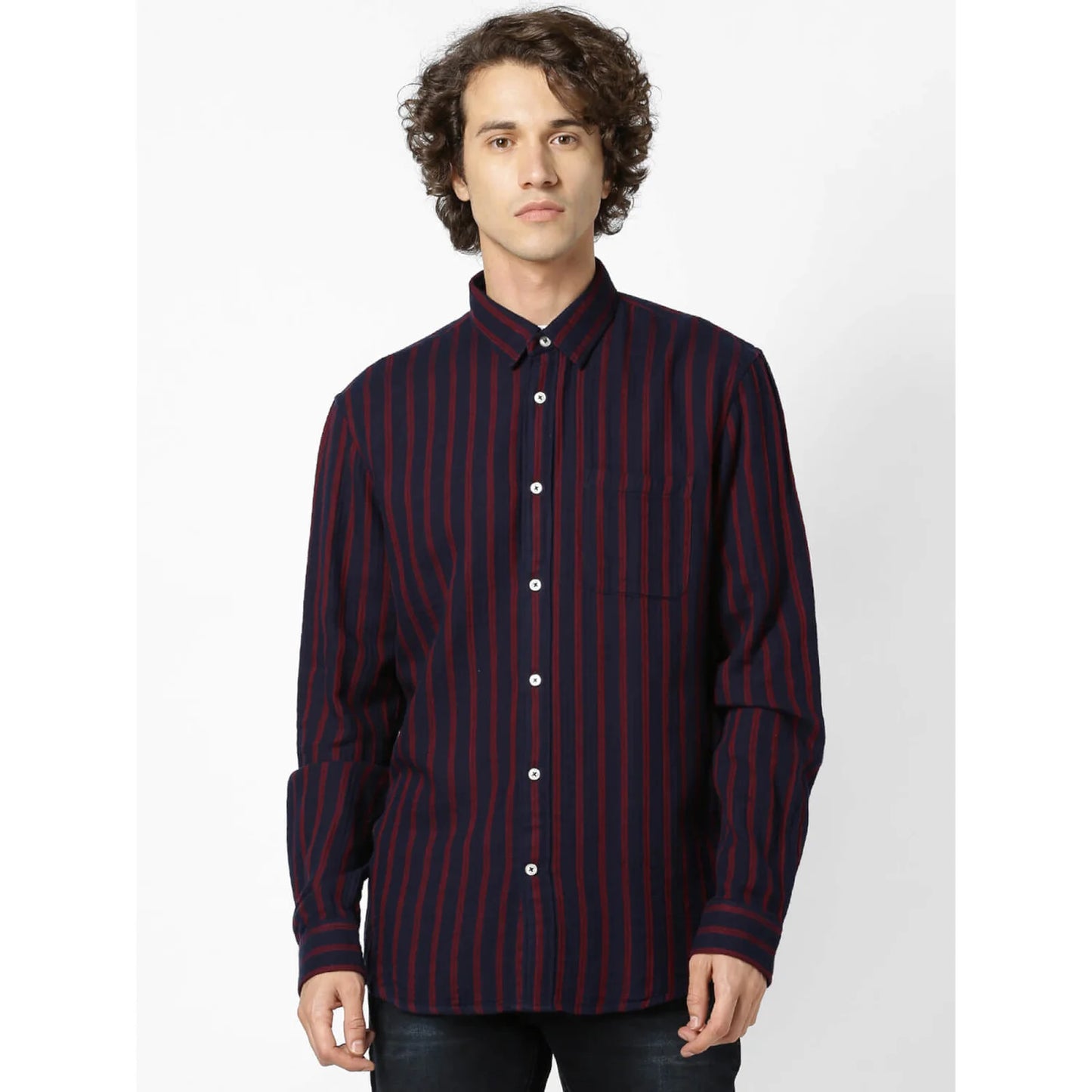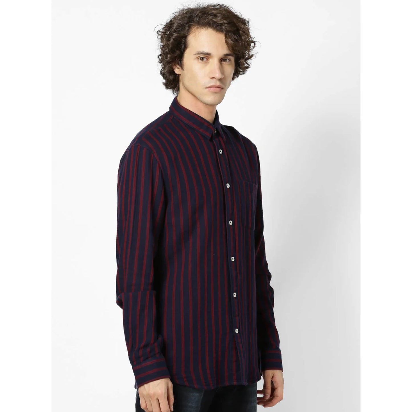 Celio* Striped Regular Fit Cotton Navy Blue Shirt