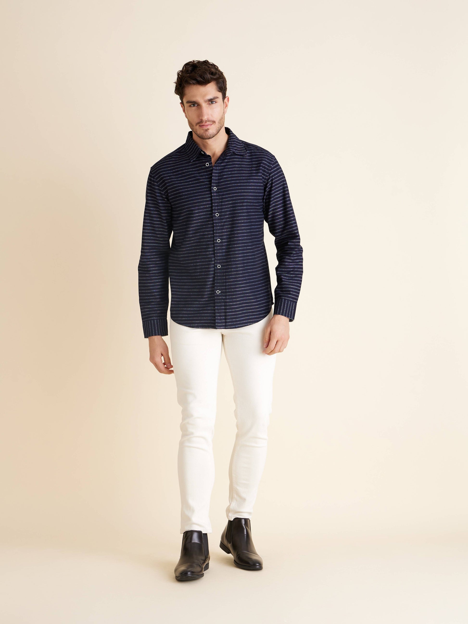 Celio Men Navy Blue Striped Regular Fit Cotton Shirts