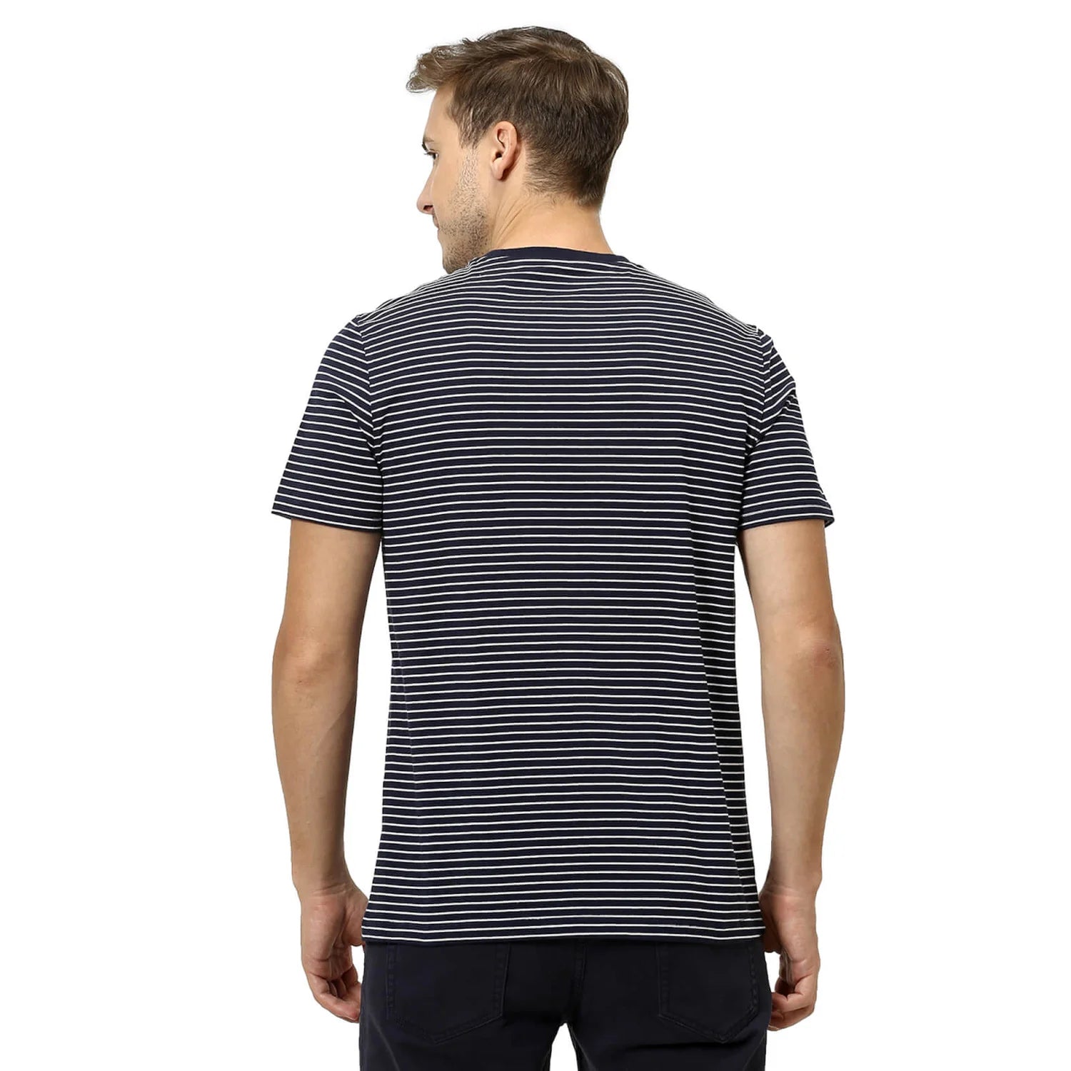 Celio* Striped Regular Fit Cotton Navy Blue T-Shirt